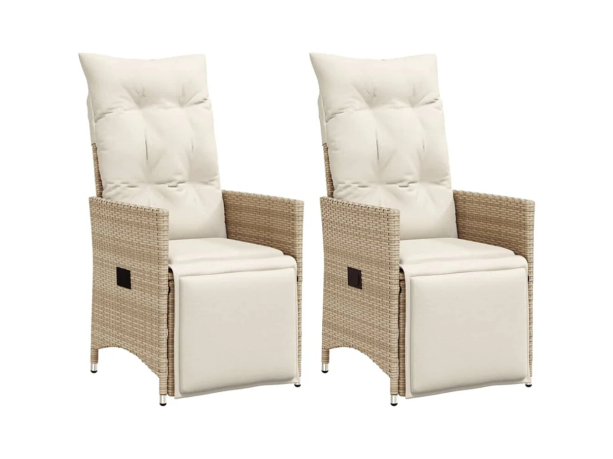 Conjunto de 2 cadeiras reclináveis de jardim e almofadas de vime bege