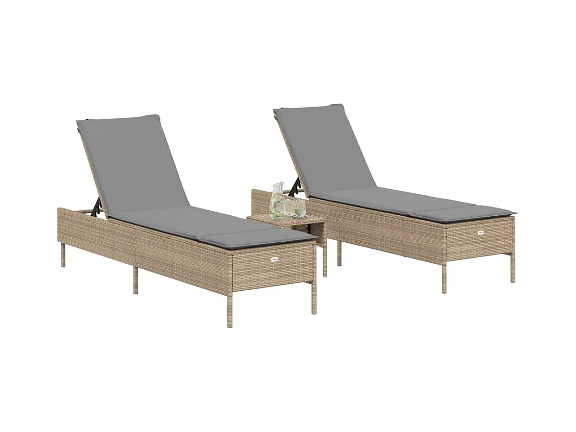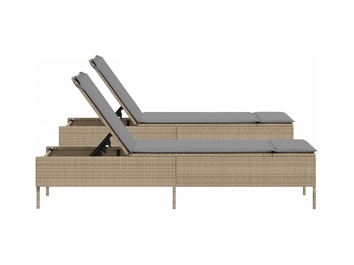 Conjunto de 2 espreguiçadeiras com almofadas em resina tecida bege
