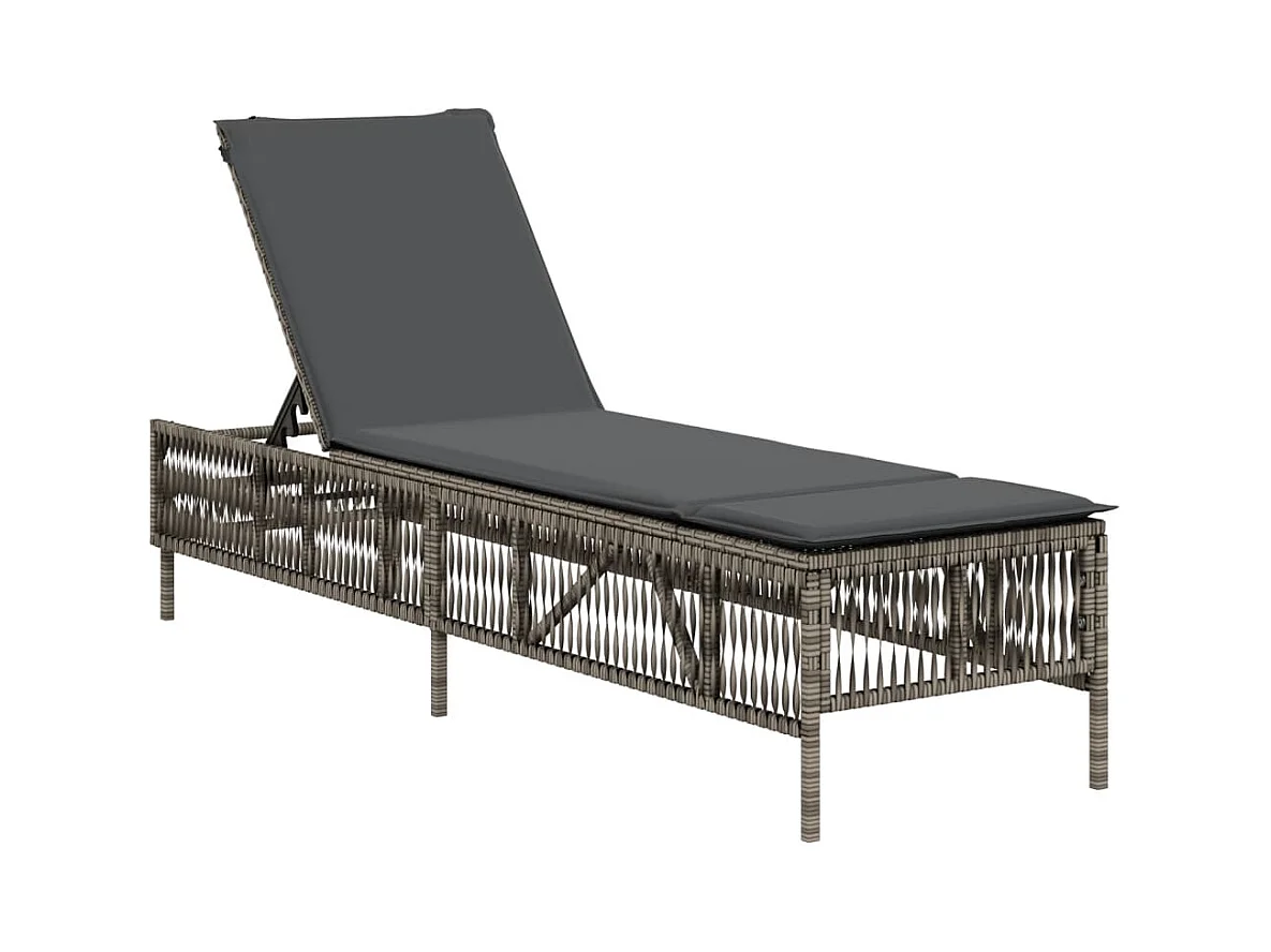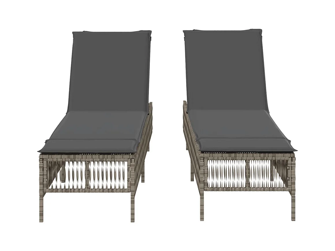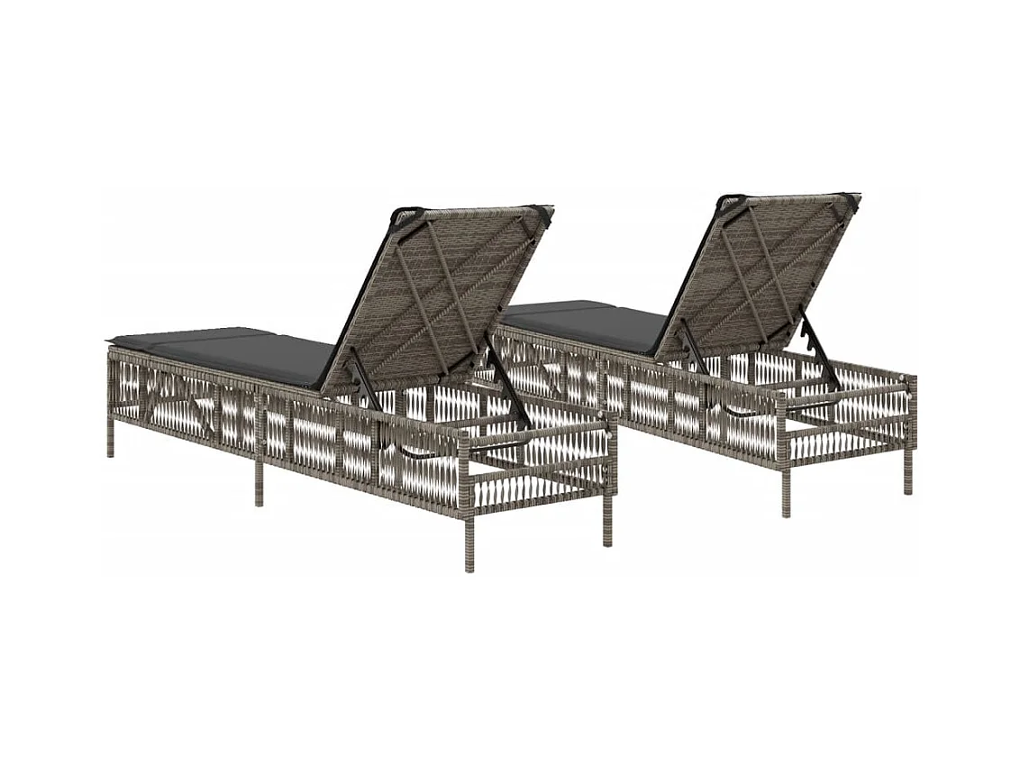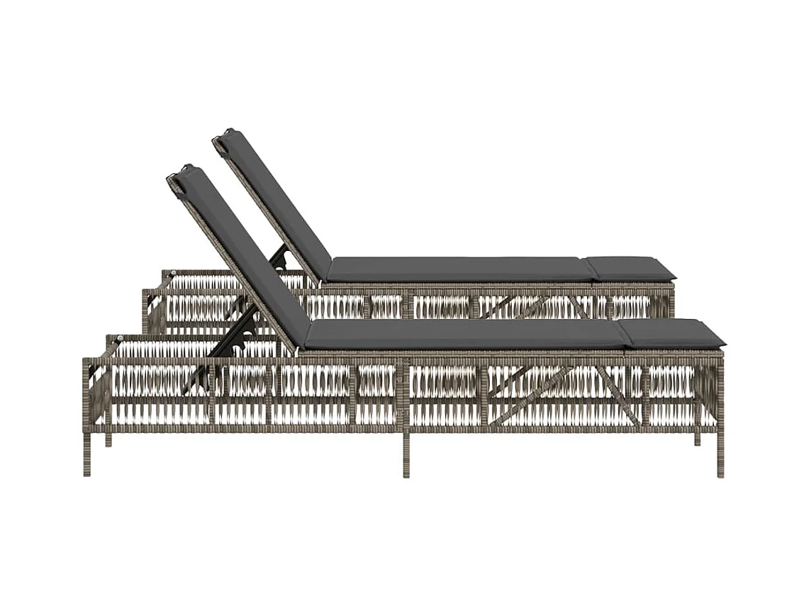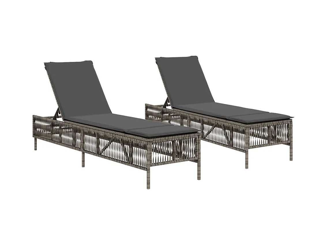 Conjunto de 2 espreguiçadeiras com almofadas em resina tecida cinza