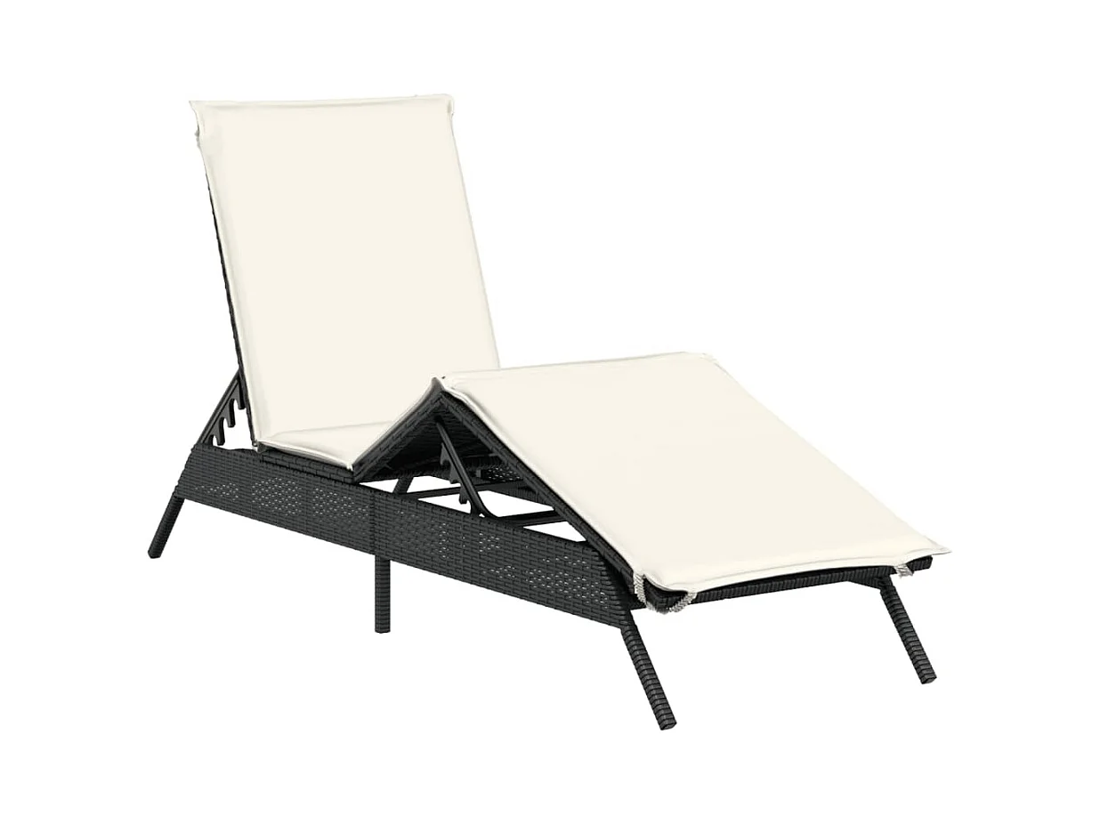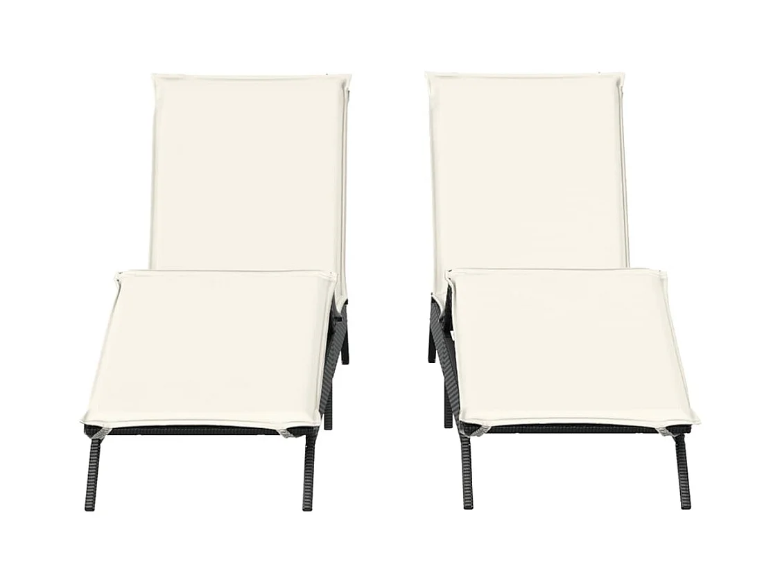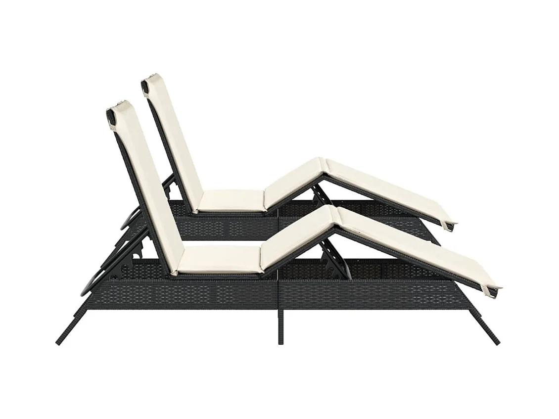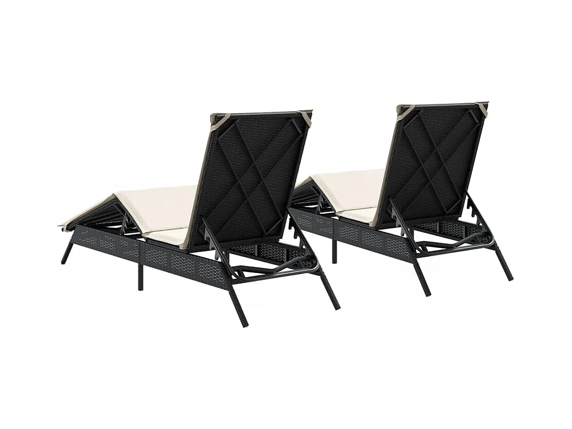 Conjunto de 2 espreguiçadeiras com almofadas em resina tecida preta