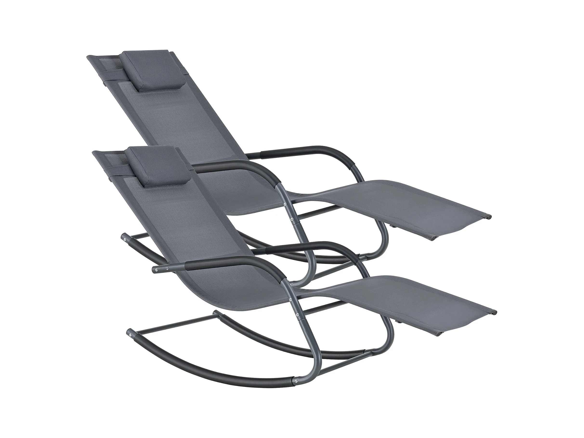 Conjunto de 2 espreguiçadeiras de balanço em aço têxtil cinza escuro 03_0006426