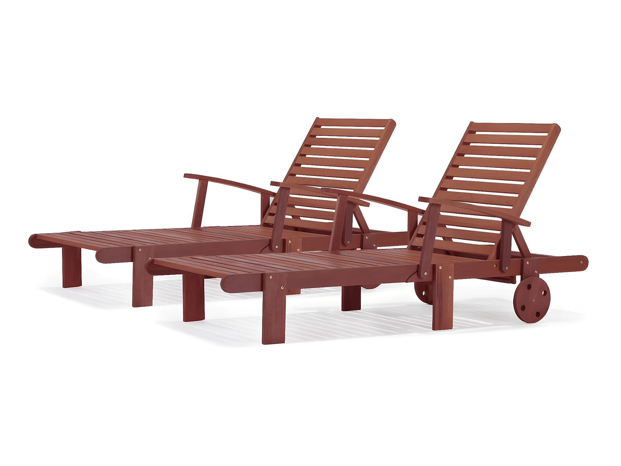 Conjunto de 2 espreguiçadeiras dobráveis em madeira exótica "Singapura" com rodas e encosto ajustável