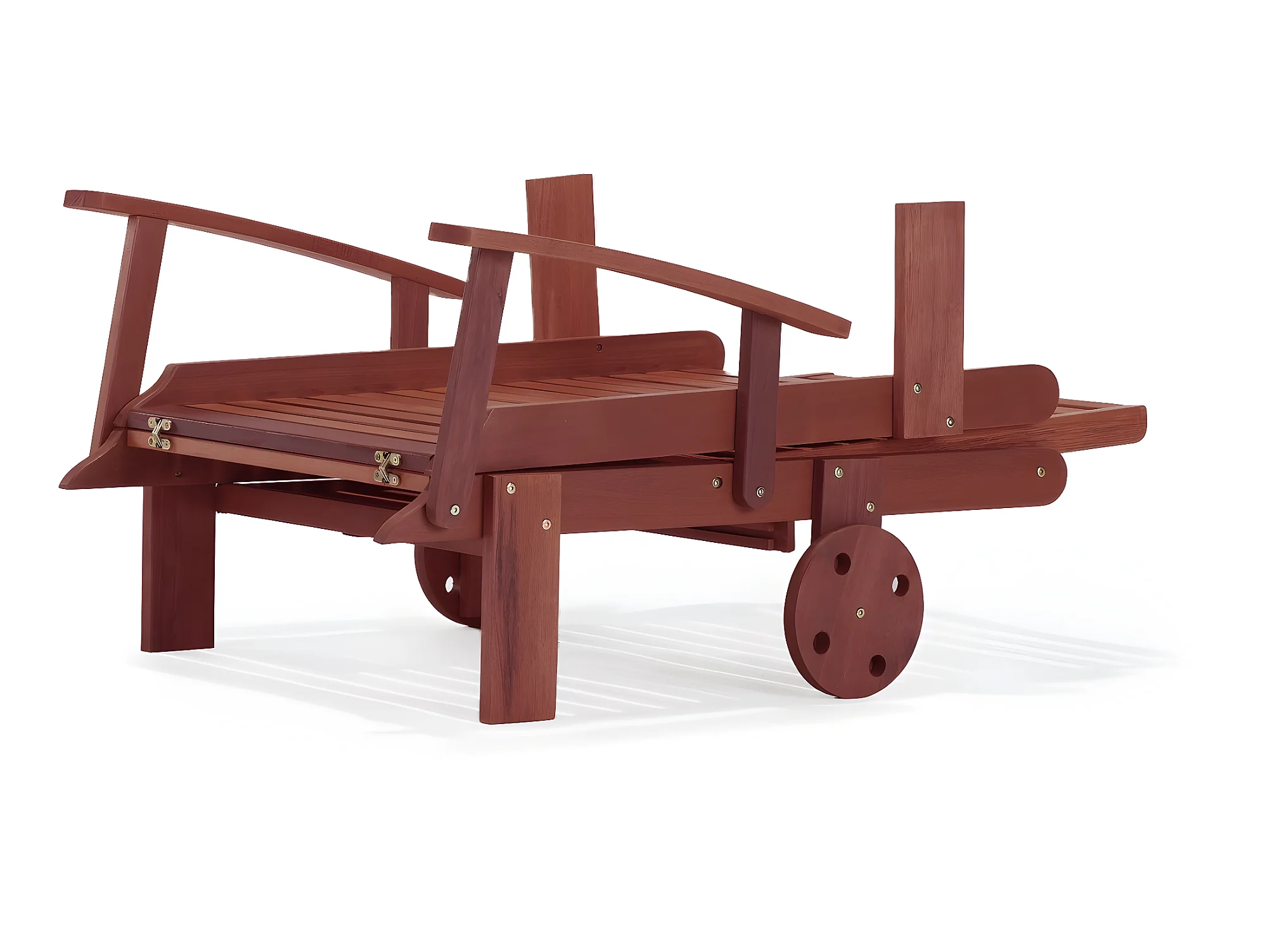Espreguiçadeira dobrável em madeira exótica "Singapura" com rodas e mesa lateral