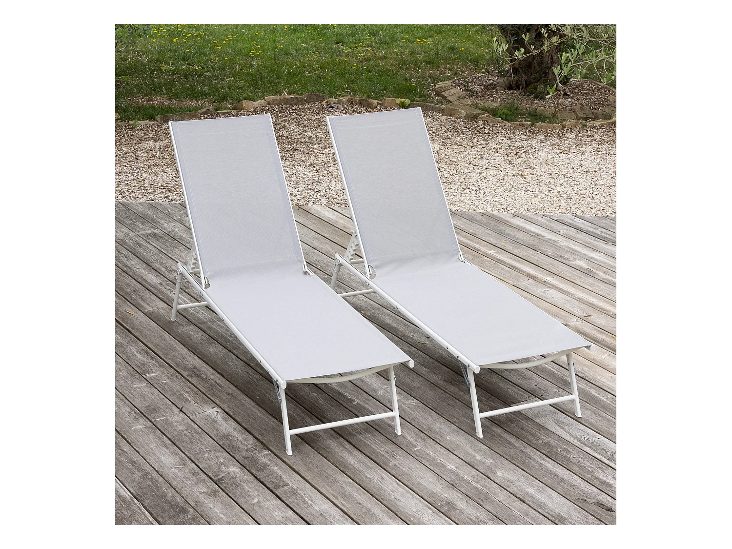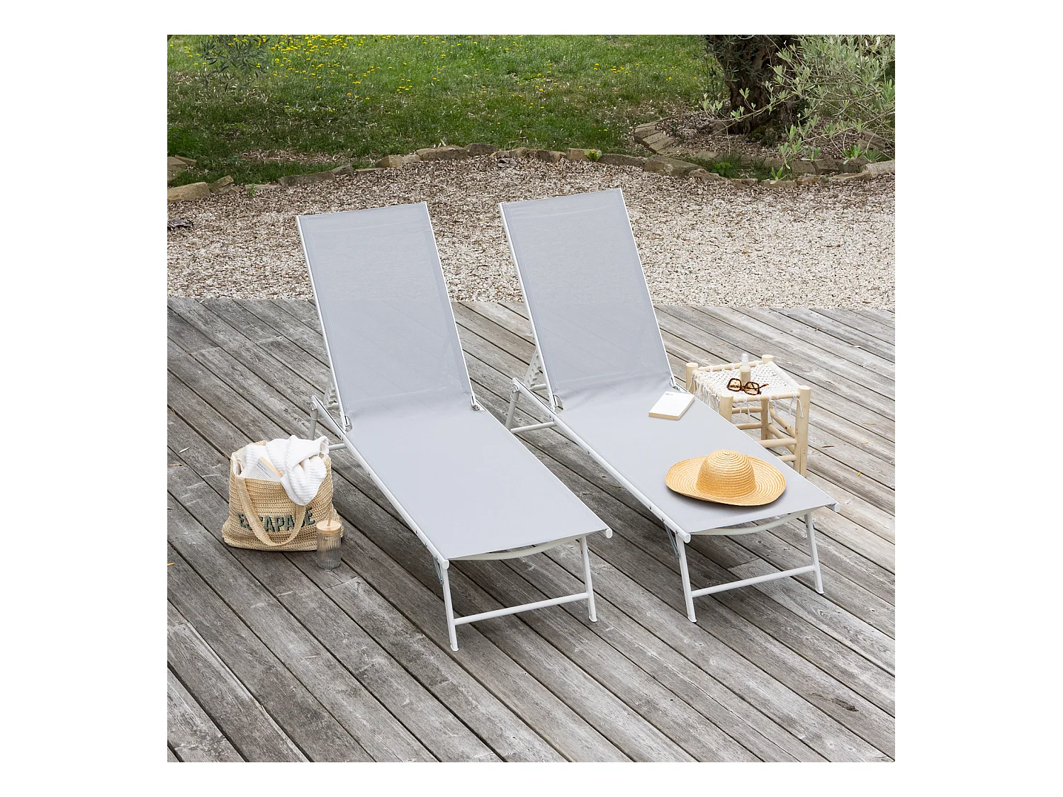 Conjunto de 2 espreguiçadeiras dobráveis SICILIA em textileno cinzento - estrutura branca