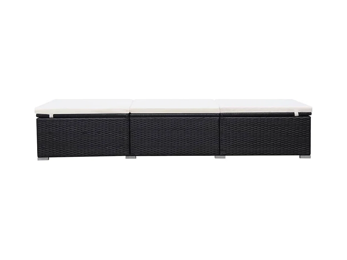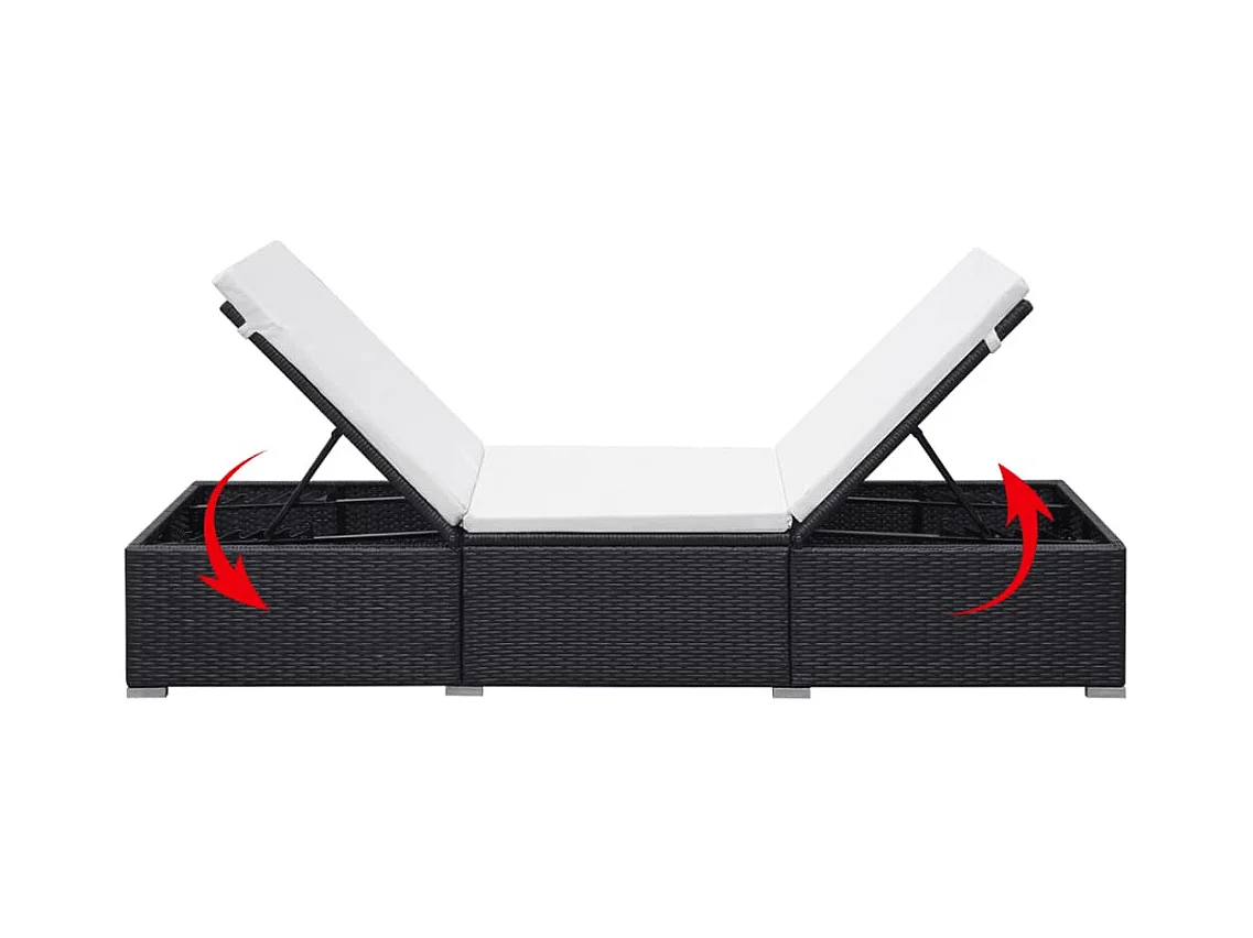 Conjunto de 2 espreguiçadeiras espreguiçadeiras para banhos de sol jardim cama terraço móveis de exterior com almofadas de resina tecida preta 02_0012157