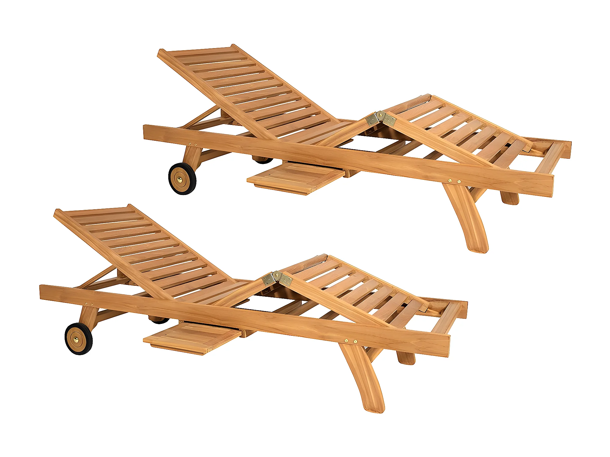 Conjunto de 2 espreguiçadeiras multiposições teca natural claro - BYBLOS II de MYLIA