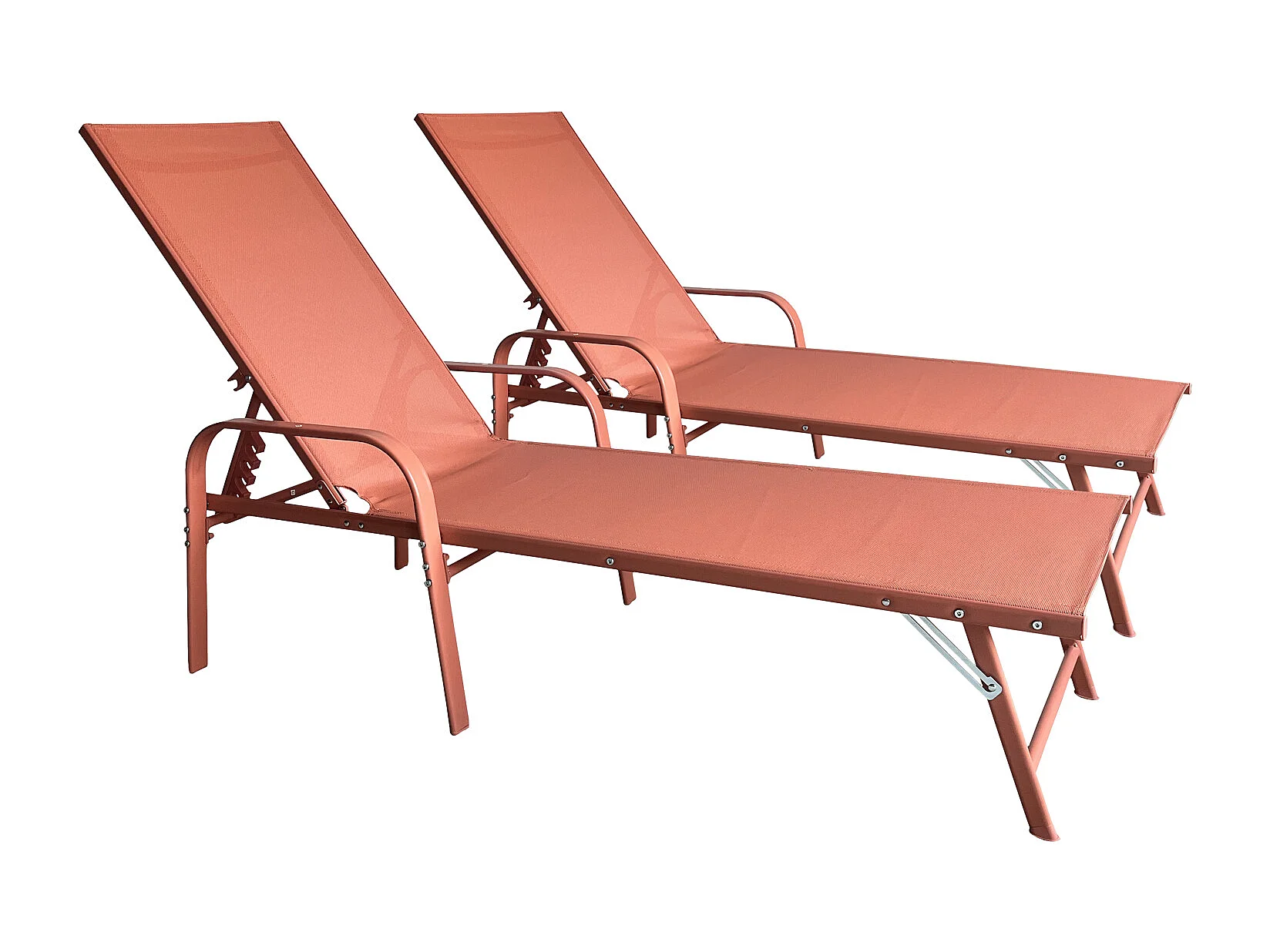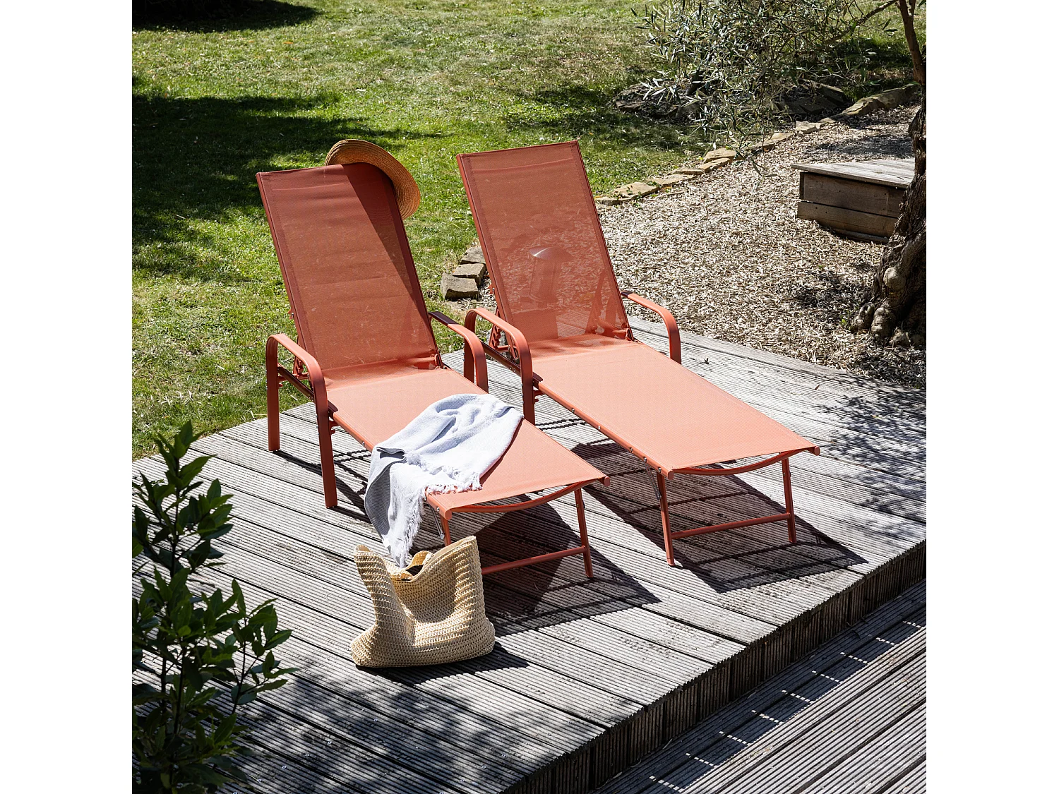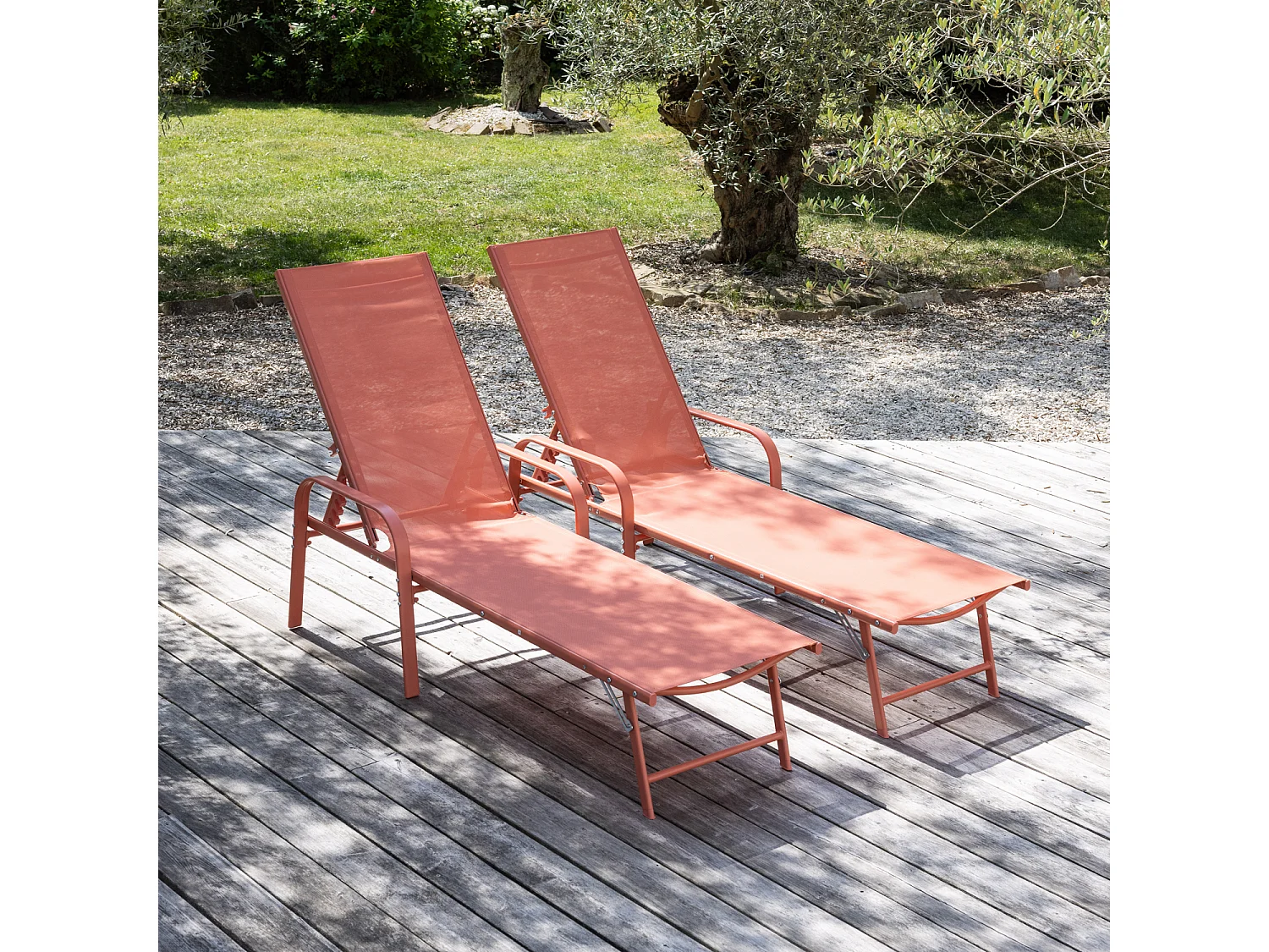Conjunto de 2 espreguiçadeiras SARDINIA em textilene terracota - moldura em terracota