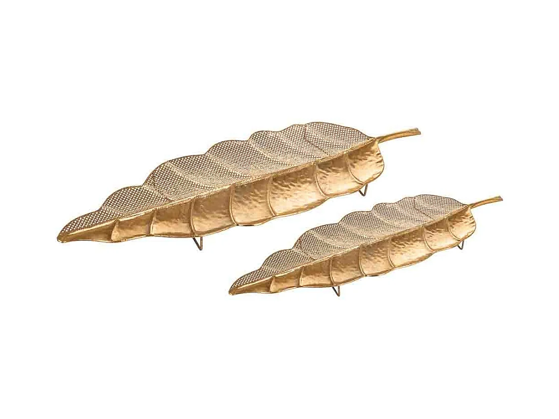 Conjunto de 2 folhas decorativas de metal dourado