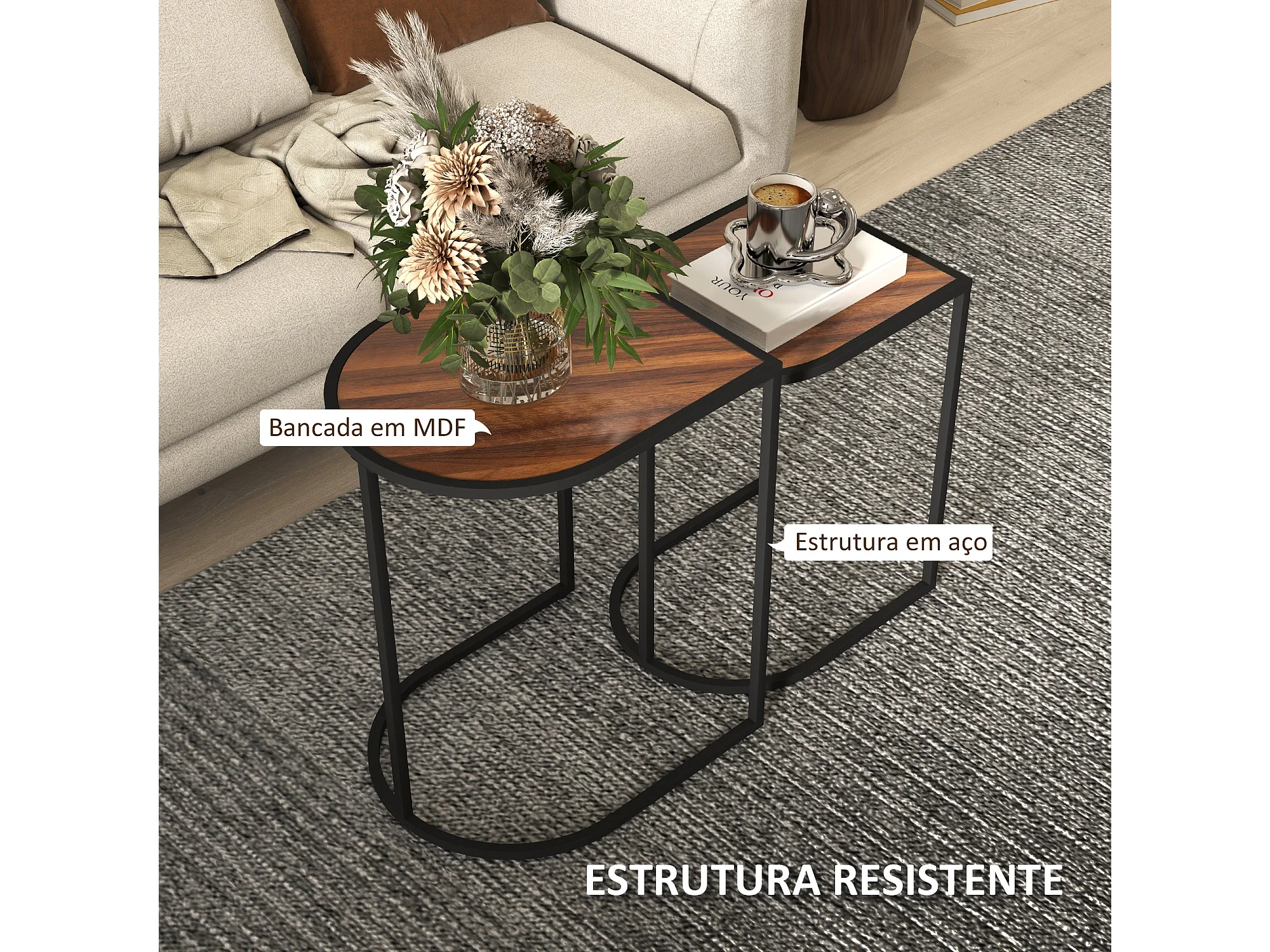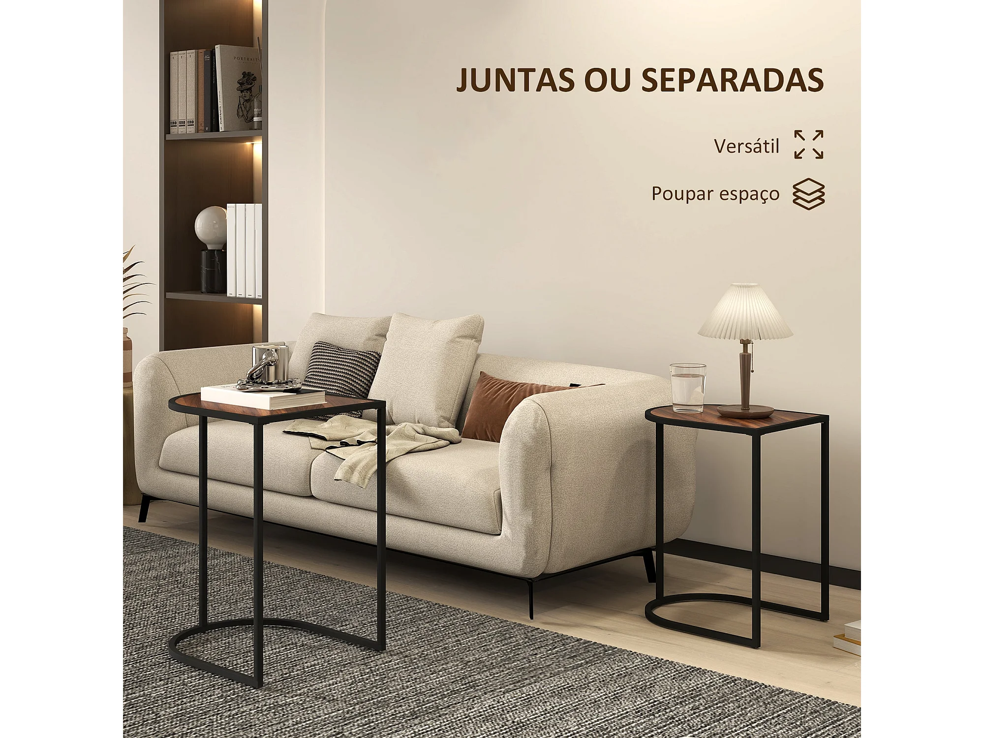 Conjunto de 2 Mesas Auxiliares para Sala de Estar com Estrutura de Aço em Estilo Rústico Ålesund