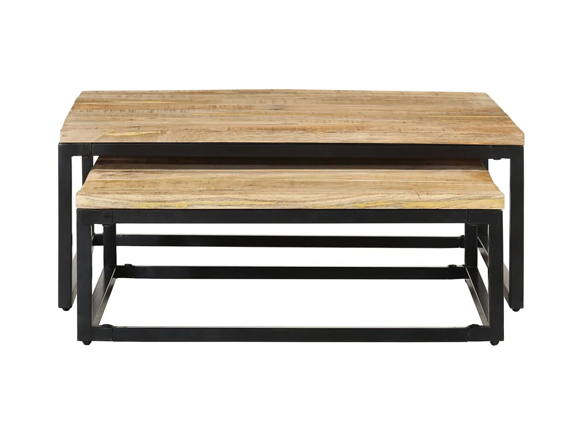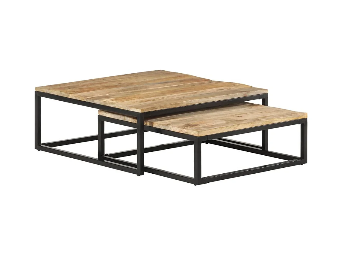 Conjunto de 2 Mesas de Centro Baixas | Mesa de apoio madeira de mangueira maciça