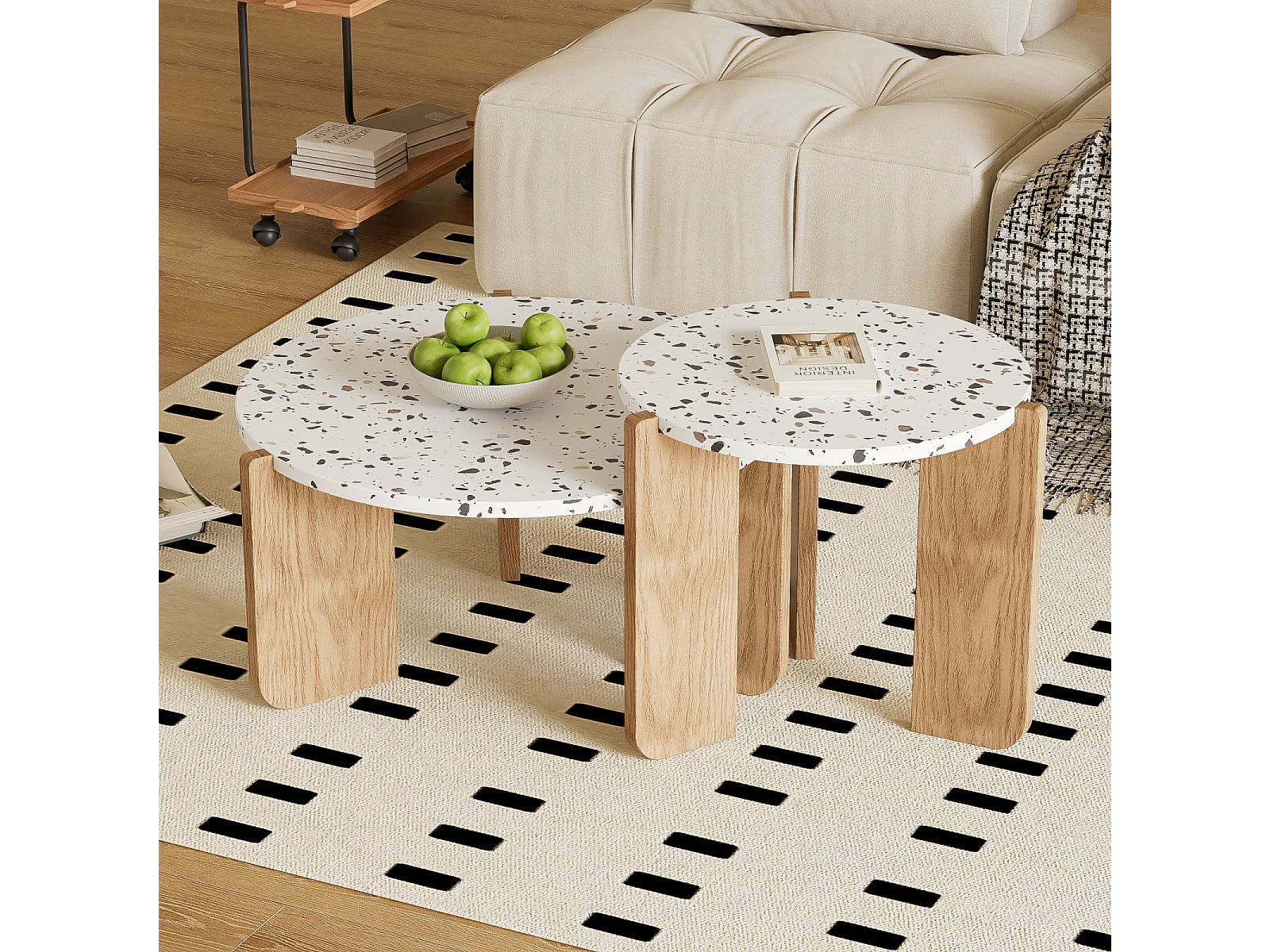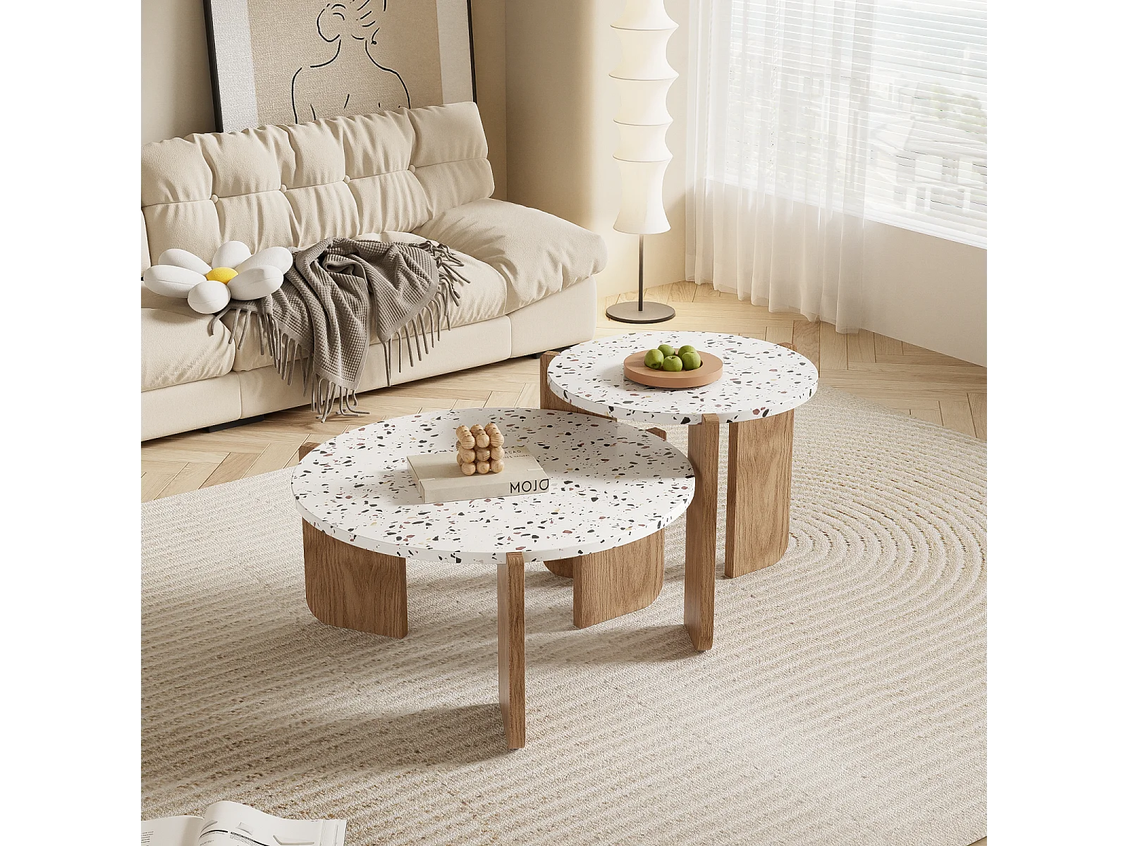 Conjunto de 2 mesas de centro encaixáveis, modulares modernas, para sala de estar, sofá, 70x70x35+50x50x45,5 (cm), Natural