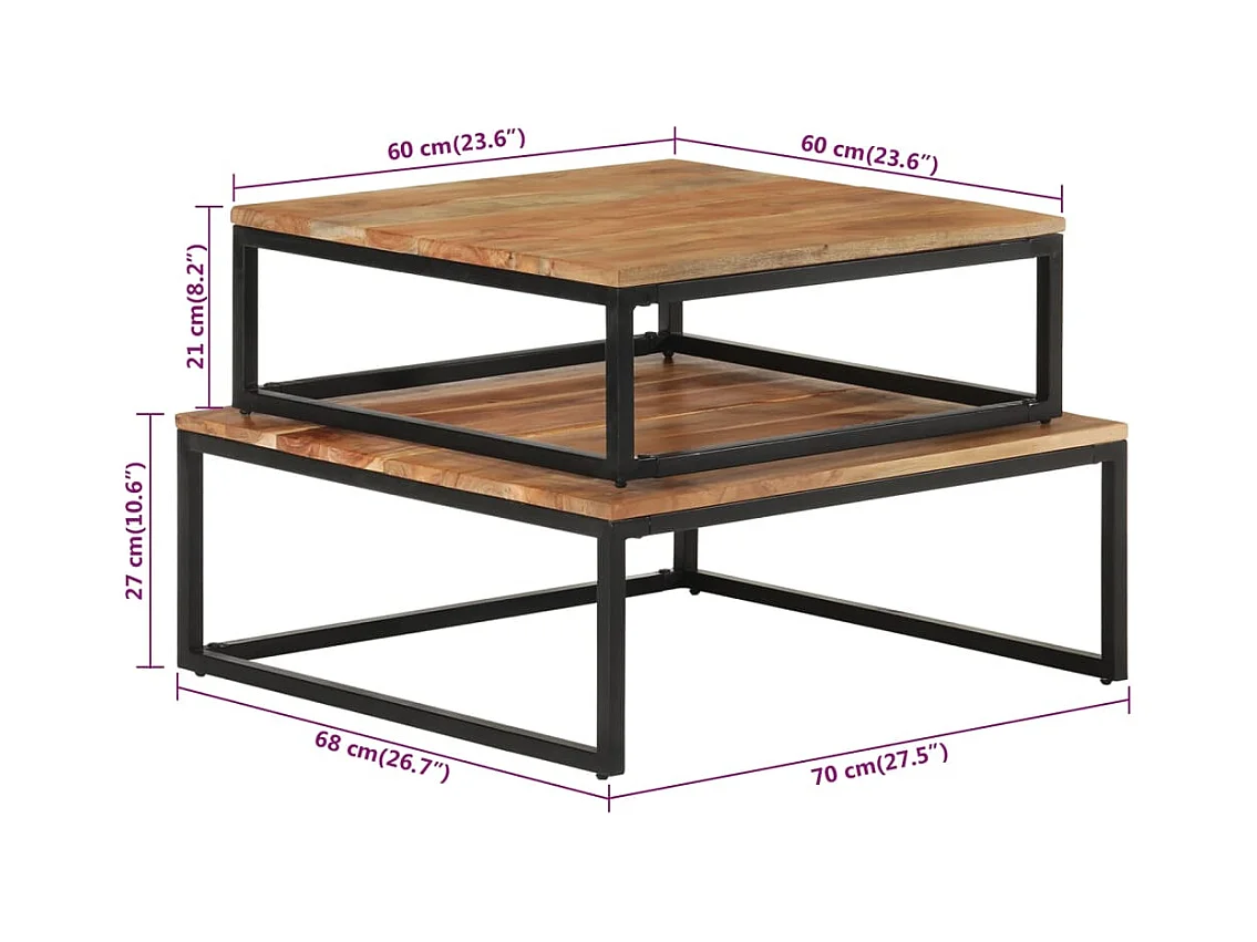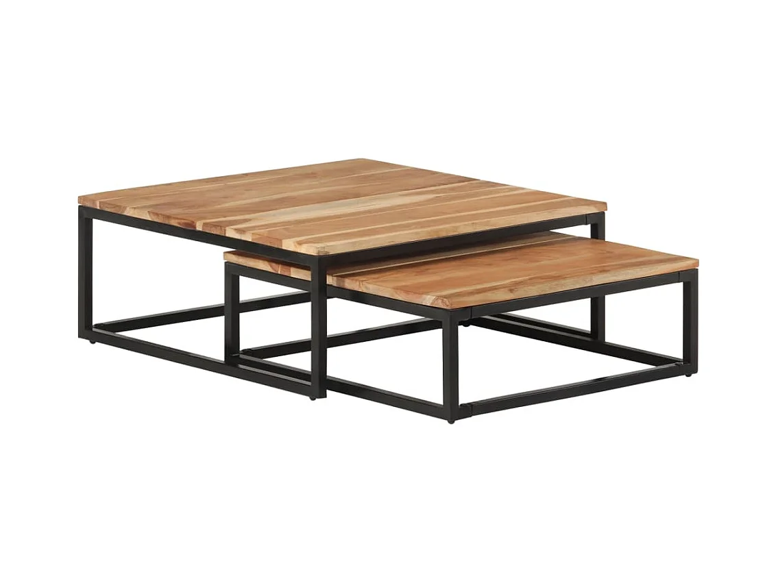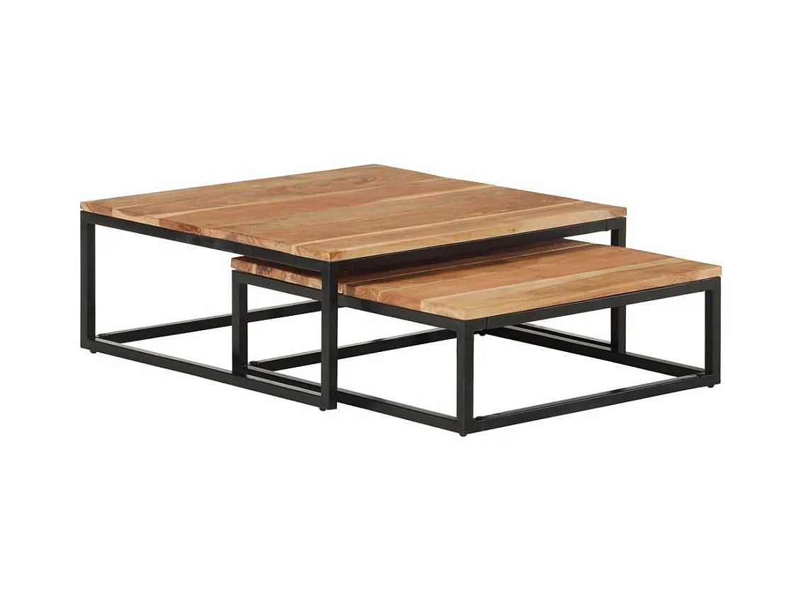 Conjunto de 2 Mesas de Centro | Mesa de apoio de encastrar madeira de acácia maciça