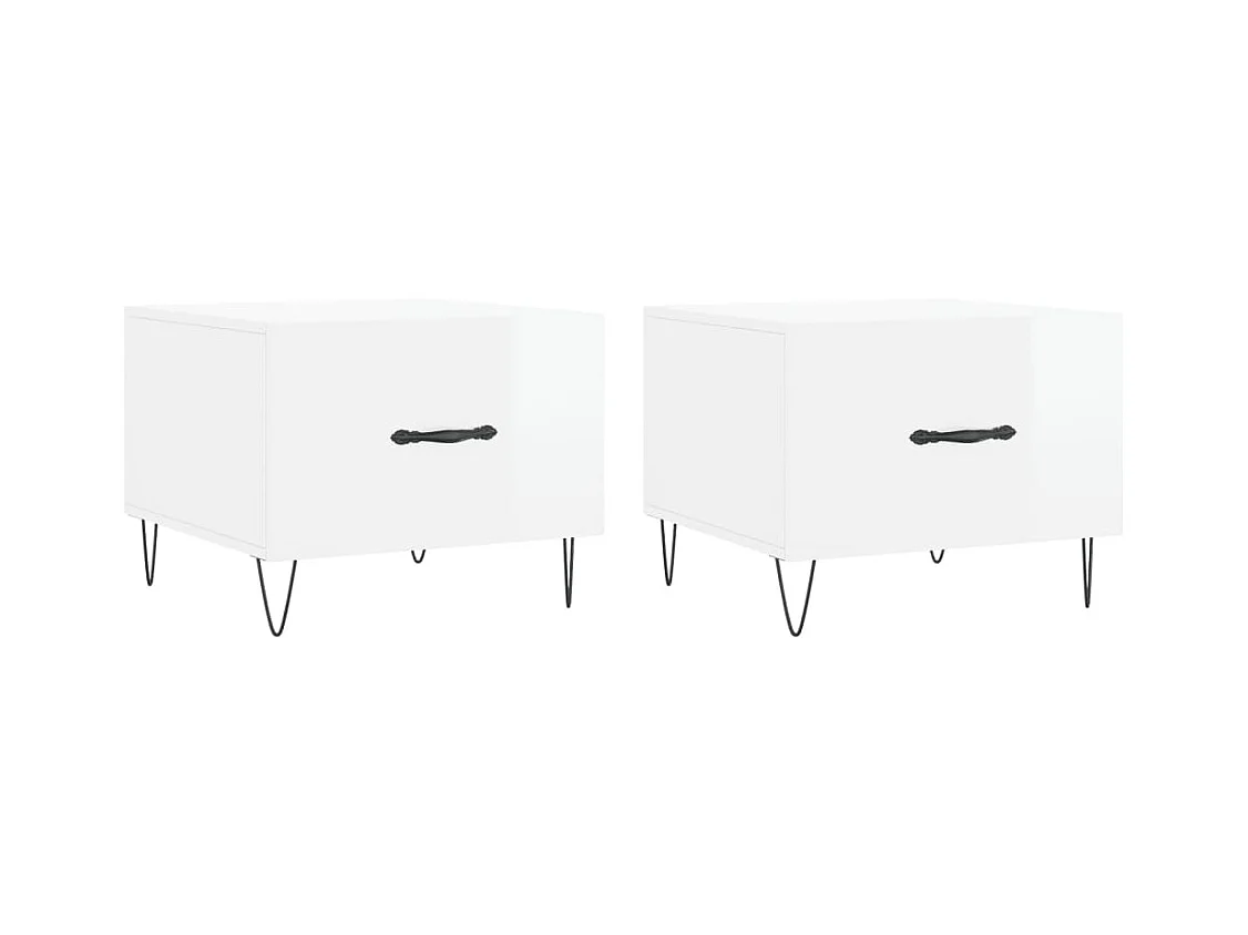 Conjunto de 2 Mesas de Centro | Mesa de apoio | Mesa de café 50x50x40 cm branco brilhante