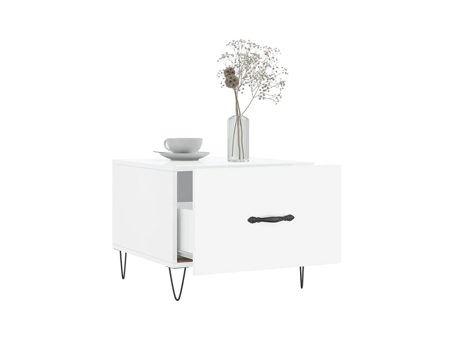 Mesa de centro | Mesa de apoio 50x50x40 cm madeira processada branco brilhante