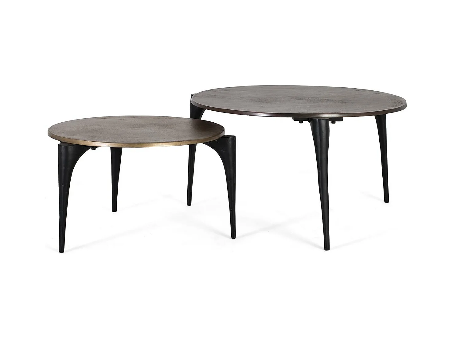 Conjunto de 2 mesas de centro redondas de madeira encaixáveis - aparência de mármore - formato U dourado