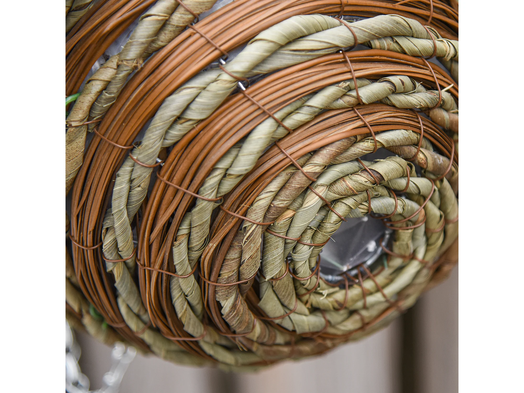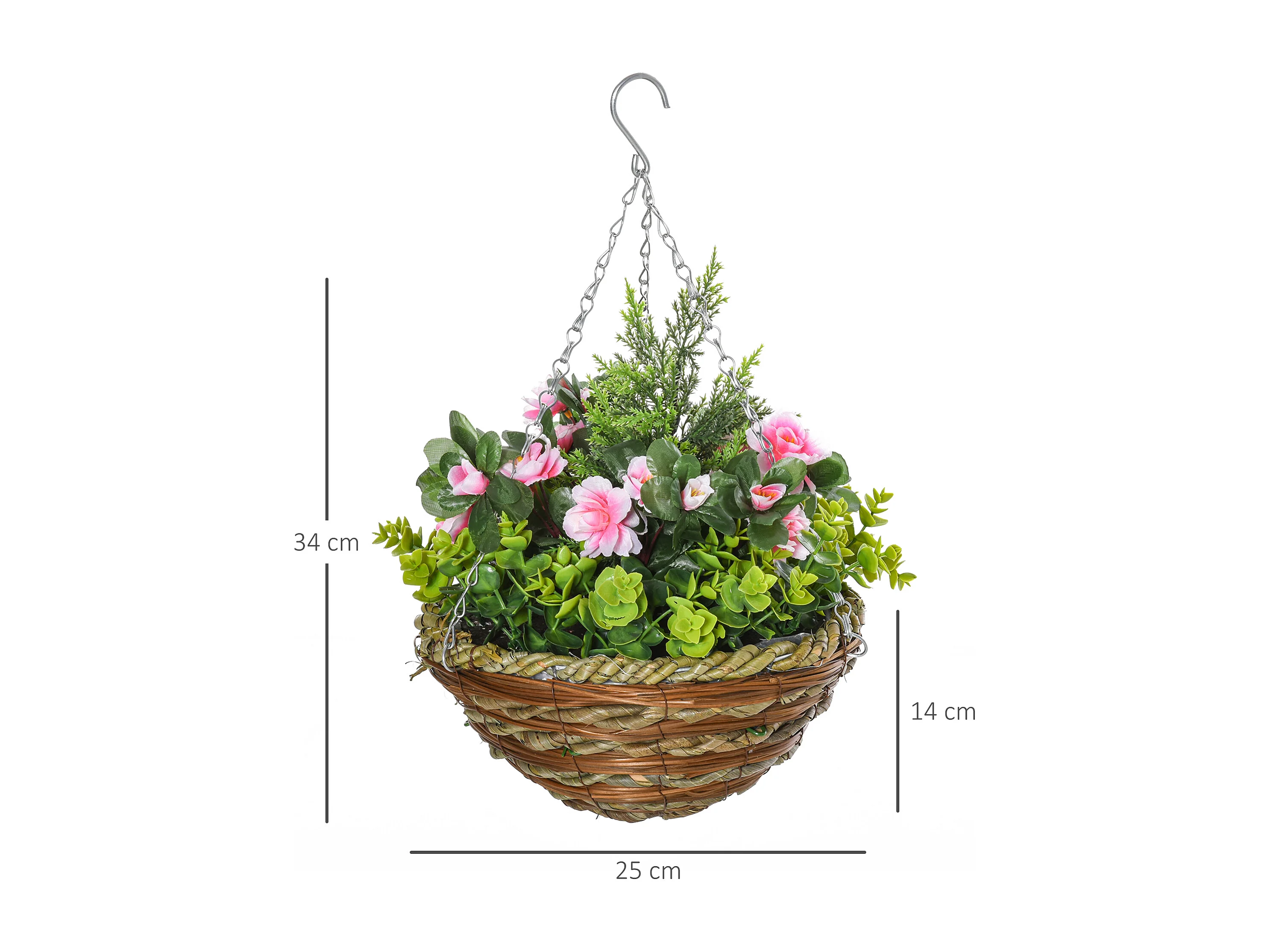 Conjunto de 2 Plantas Artificiais Lisianthus Suspensas com Vaso de Vime - Rosa e Verde - Ø25x34 cm