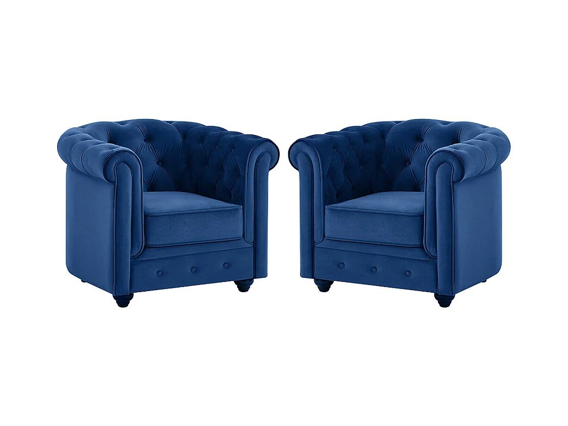 Conjunto de 2 poltronas CHESTERFIELD - Veludo azul-real