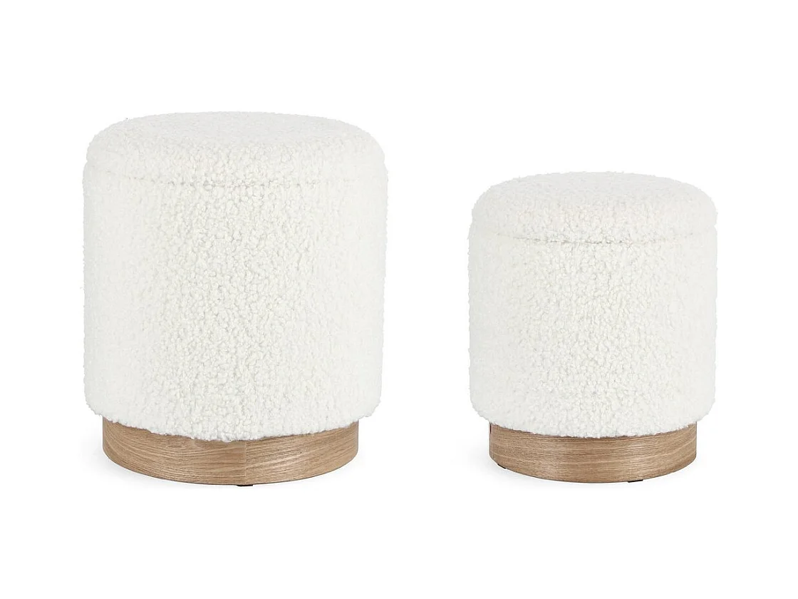 Conjunto de 2 pufes de arrumação Teddy branco e madeira de freixo - ZOYA