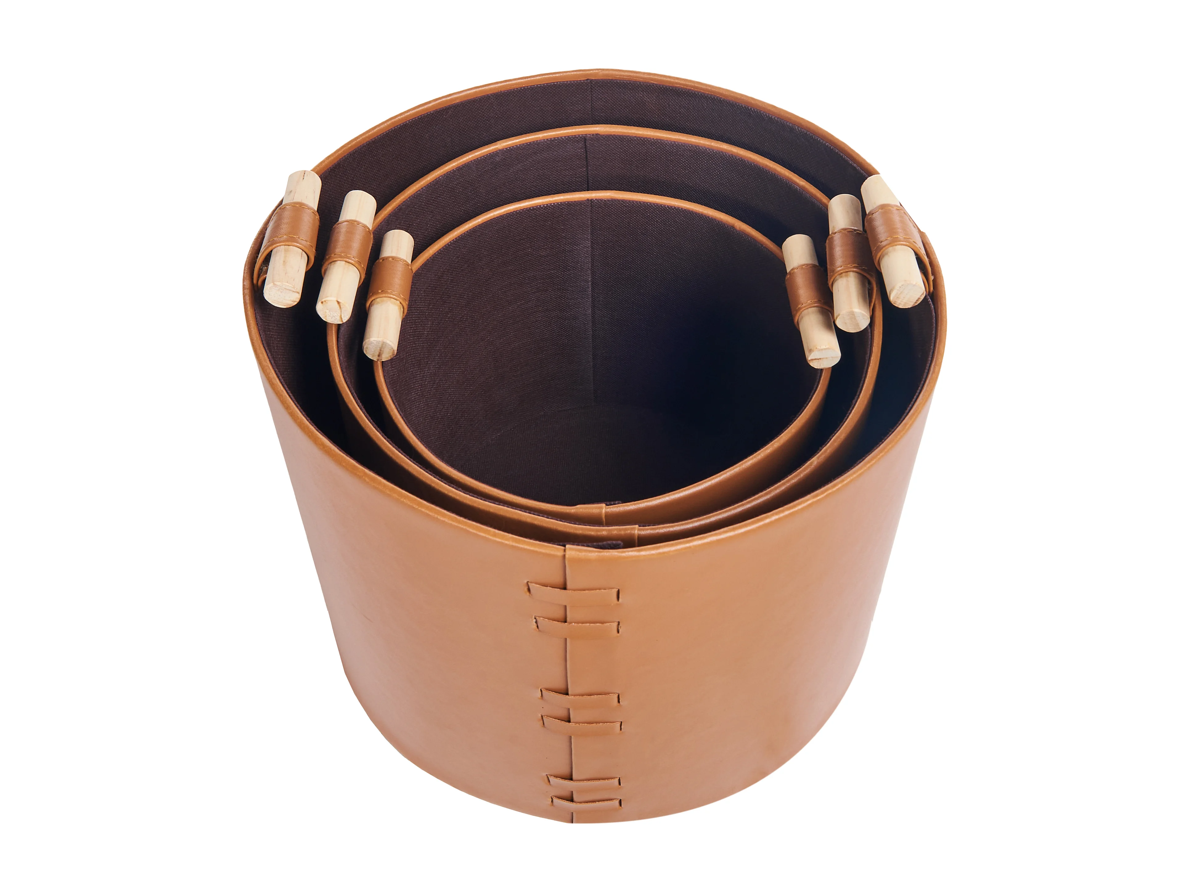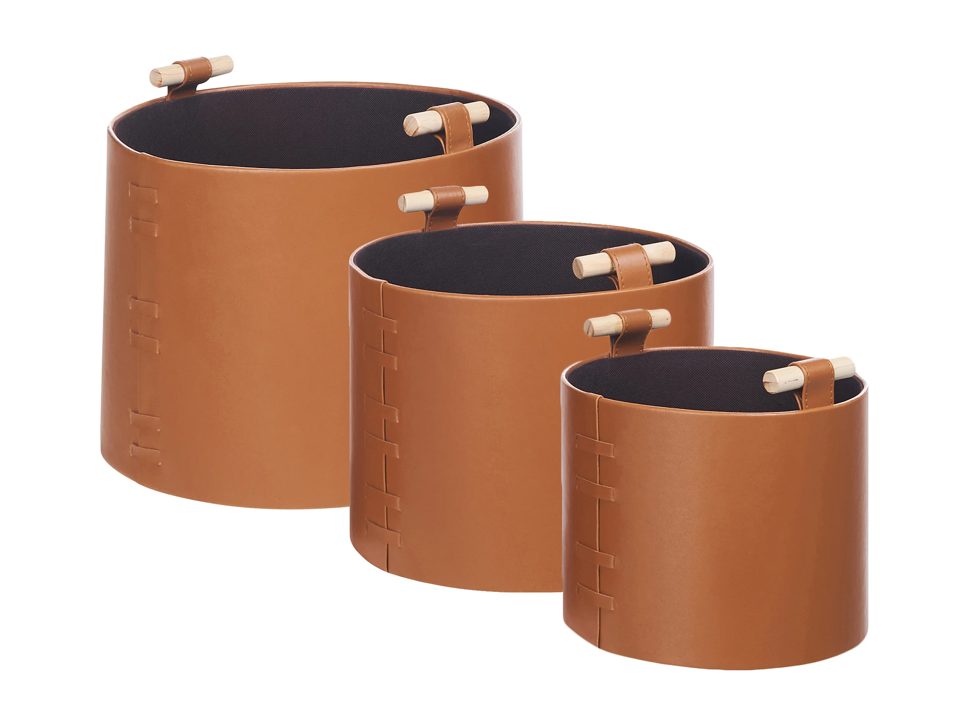 Conjunto de 3 cestos ARAM Pele sintética Castanho