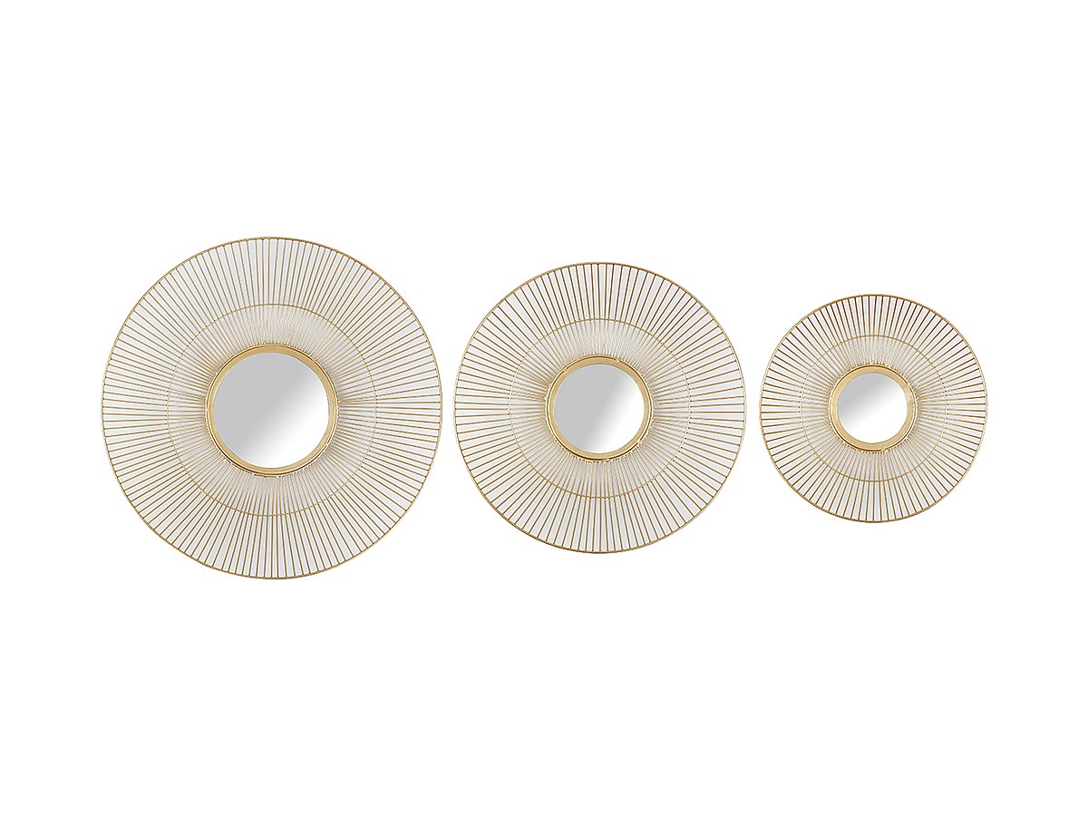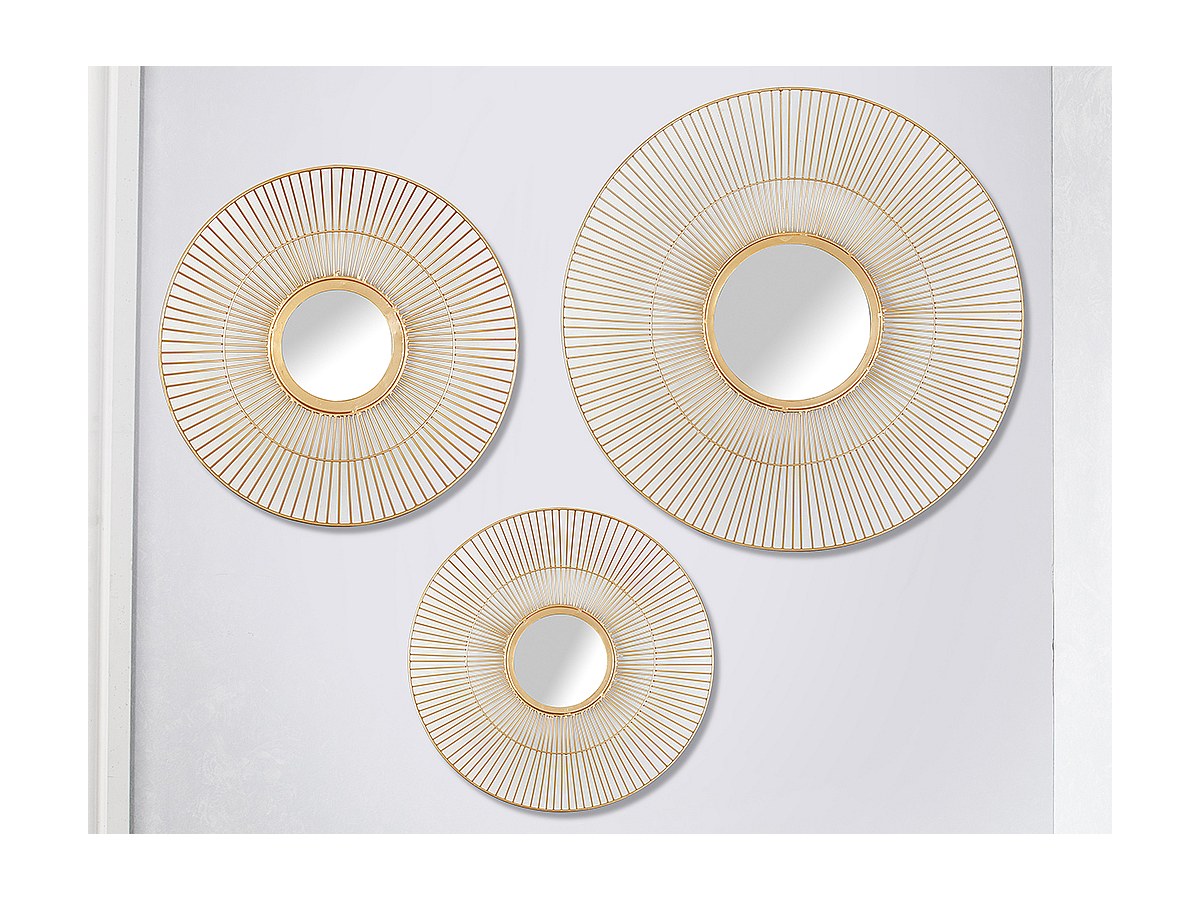 Conjunto de 3 espelhos redondos arame estilo art déco MARISA - Ferro e vidro - Dourado