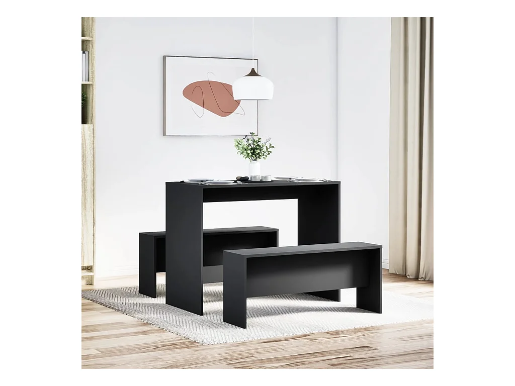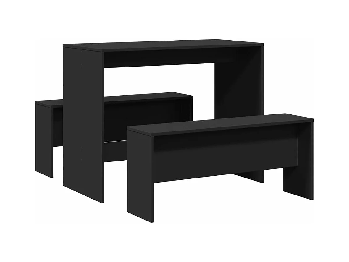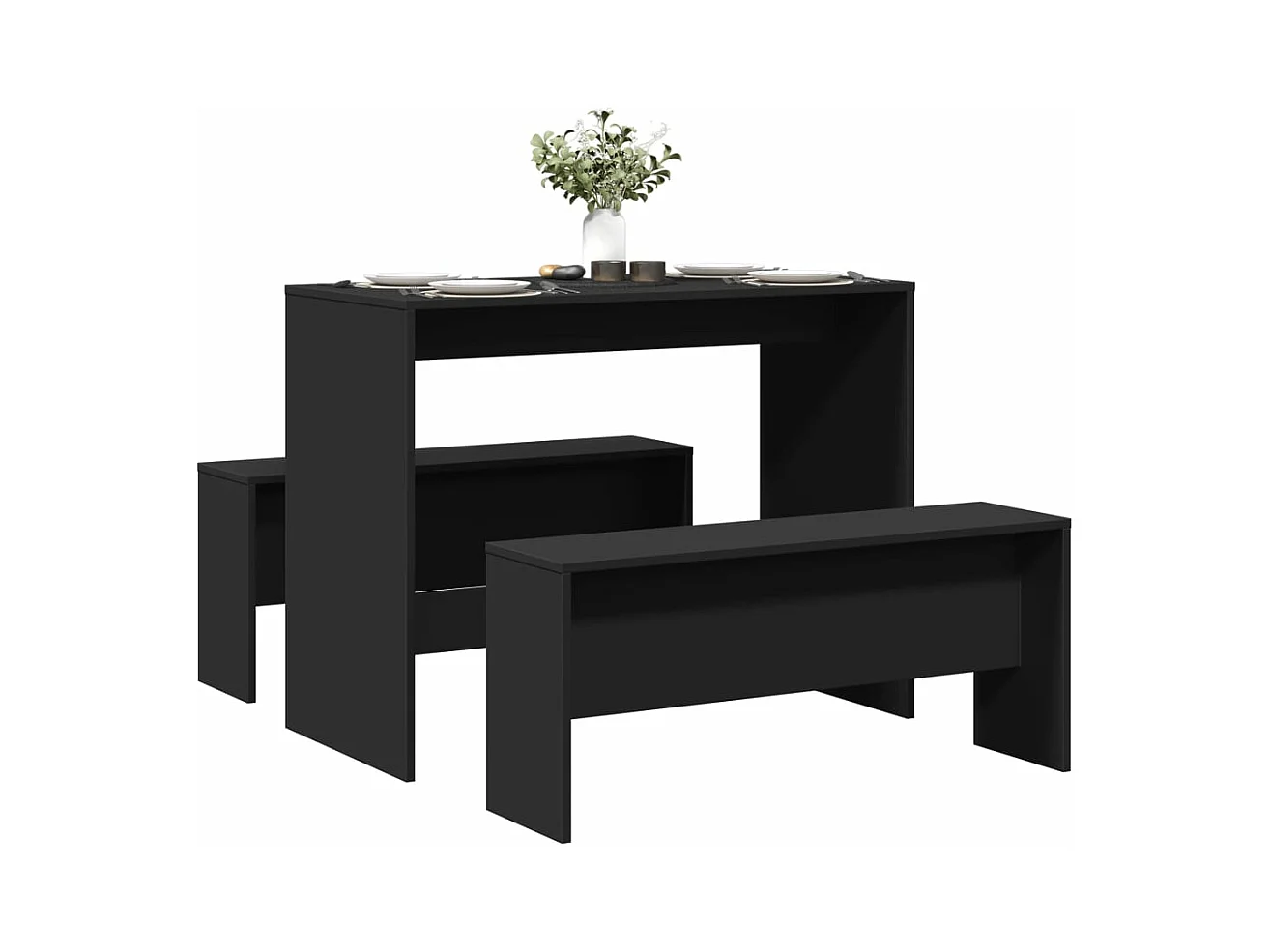 Conjunto de 3 peças de mesa de jantar e banco de madeira preta