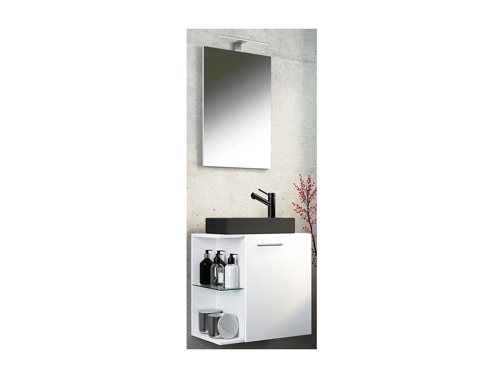 Conjunto VCM de 3 peças | Lavandaria para hóspedes WC | Banheiro | Lavatório com espelho | Conjunto de casas de banho – Hausa SP-BL (Branco)