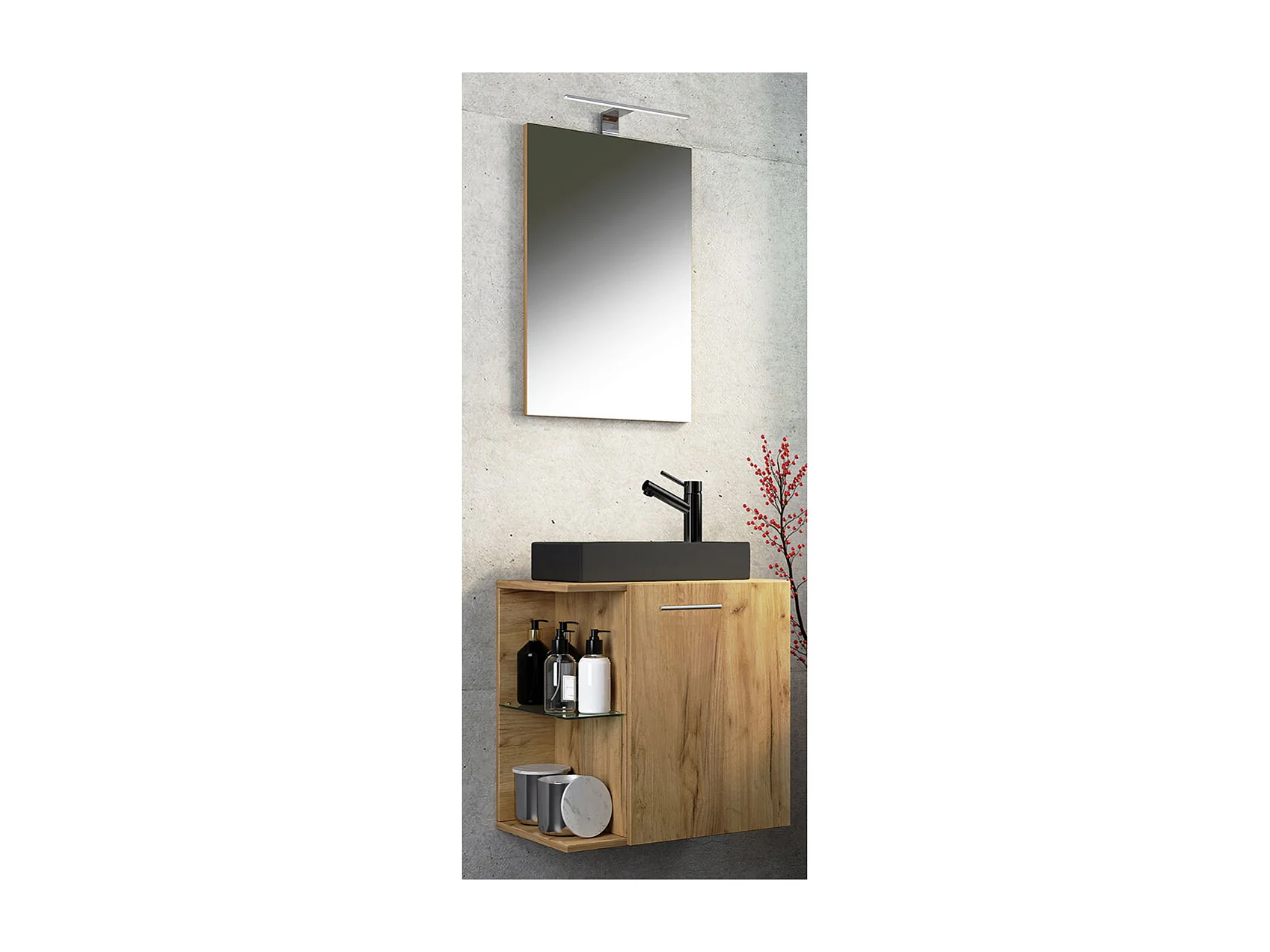Conjunto VCM de 3 peças | Lavandaria para hóspedes WC | Banheiro | Lavatório com espelho | Conjunto de casas de banho – Hausa SP-BL (carvalho mel)