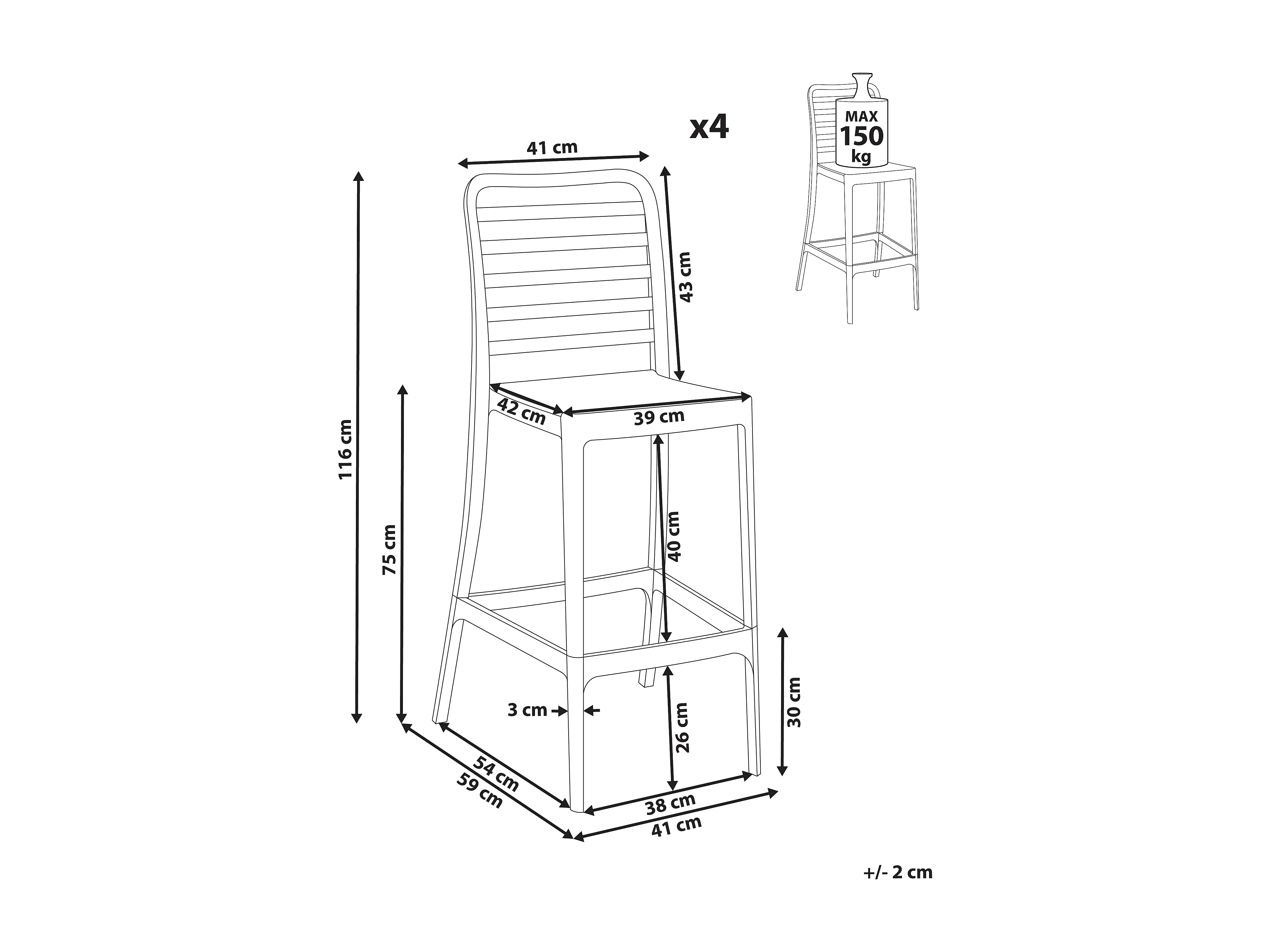Conjunto de 4 bancos de bar SECEDA Material sintético Preto