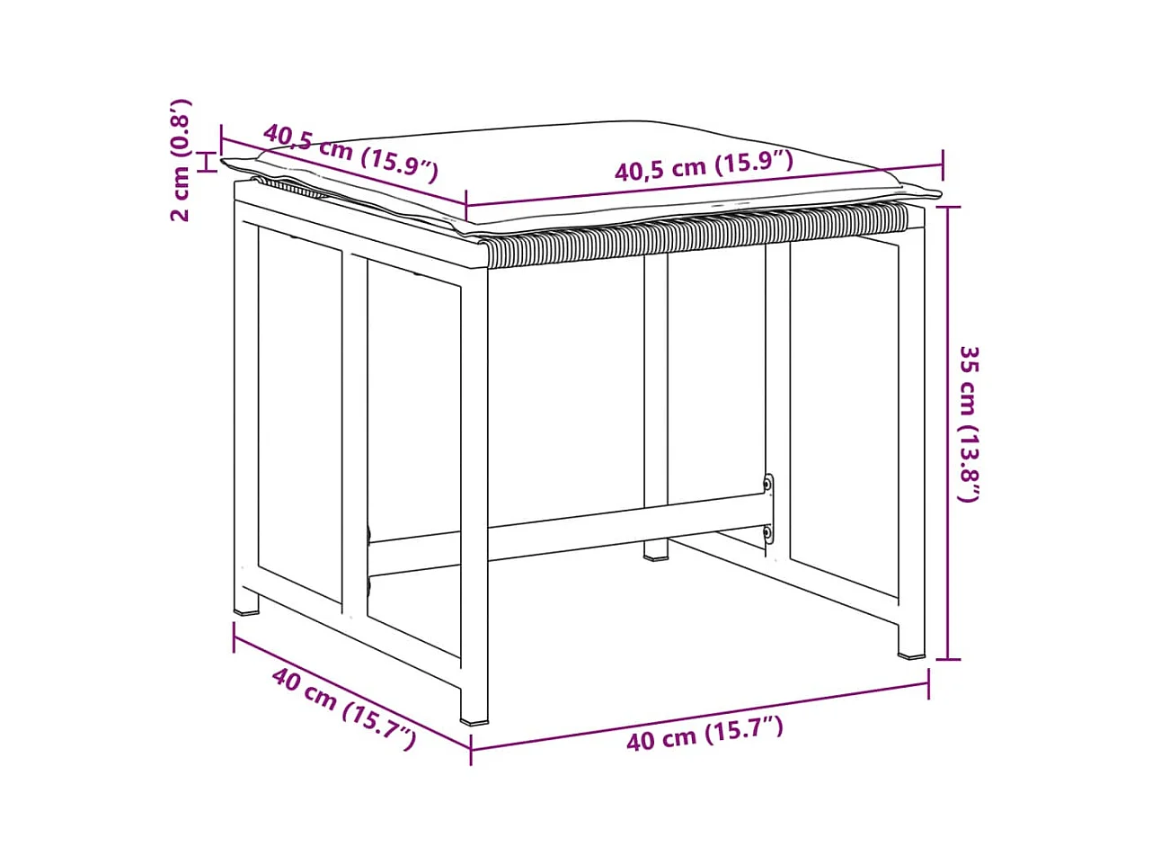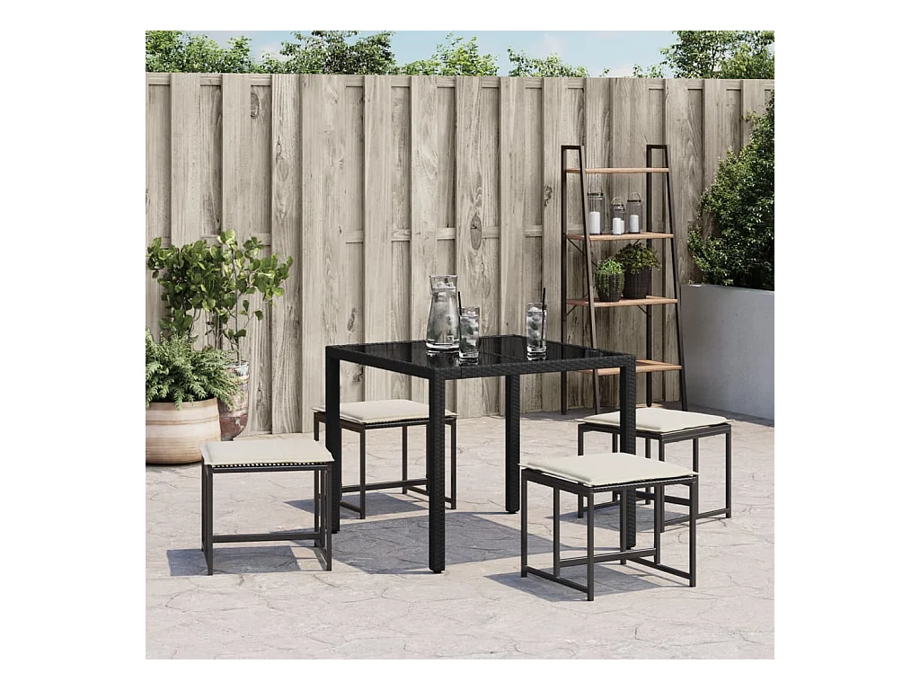 Conjunto de 4 bancos e almofadas de jardim em vime preto 40x40x35 cm