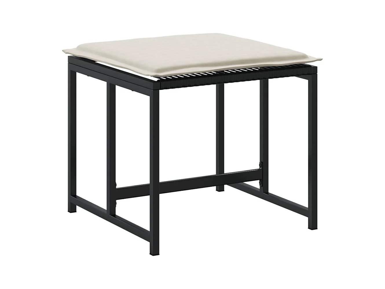 Repousa-pés de jardim com almofada de resina tecida preta