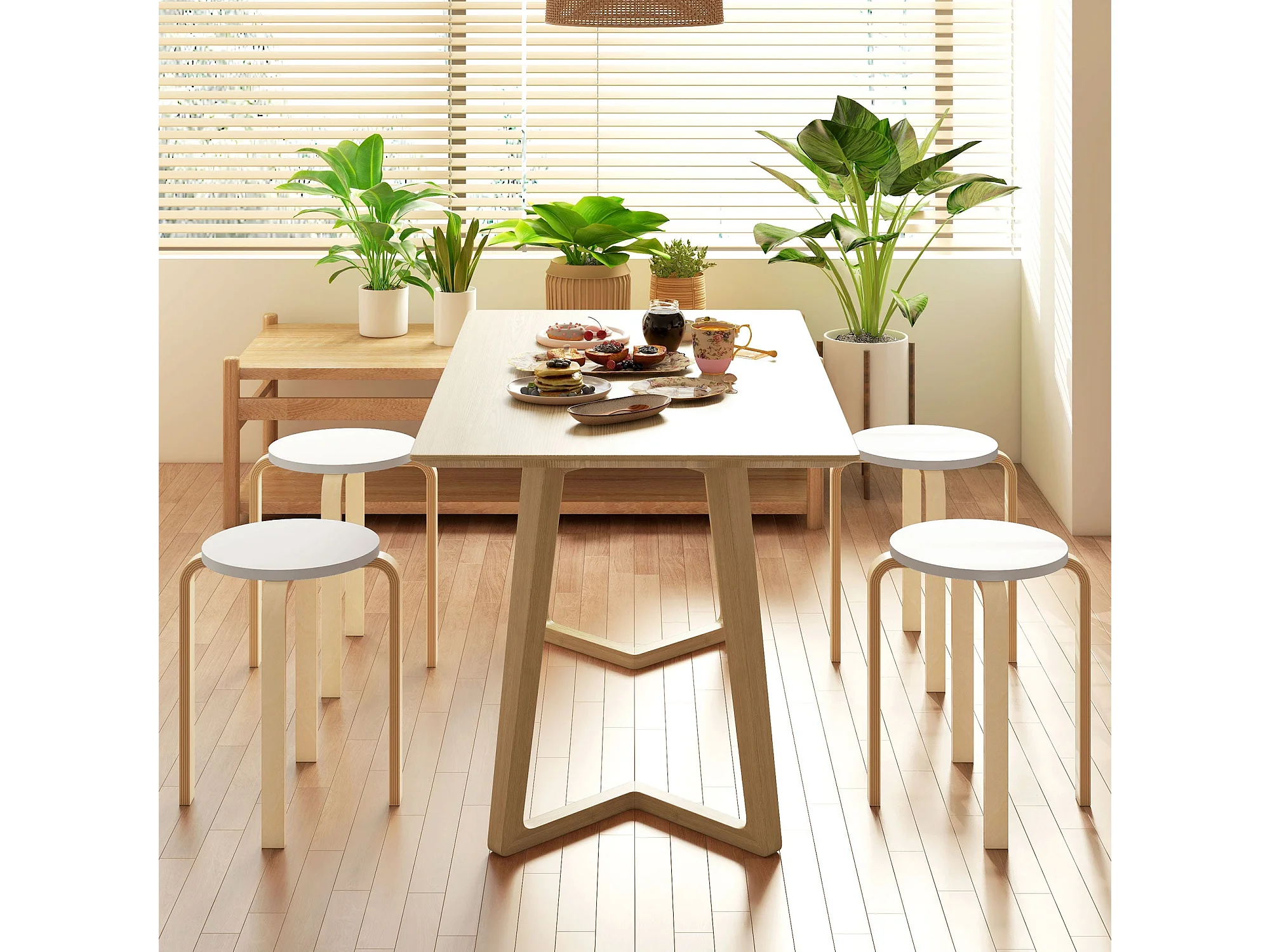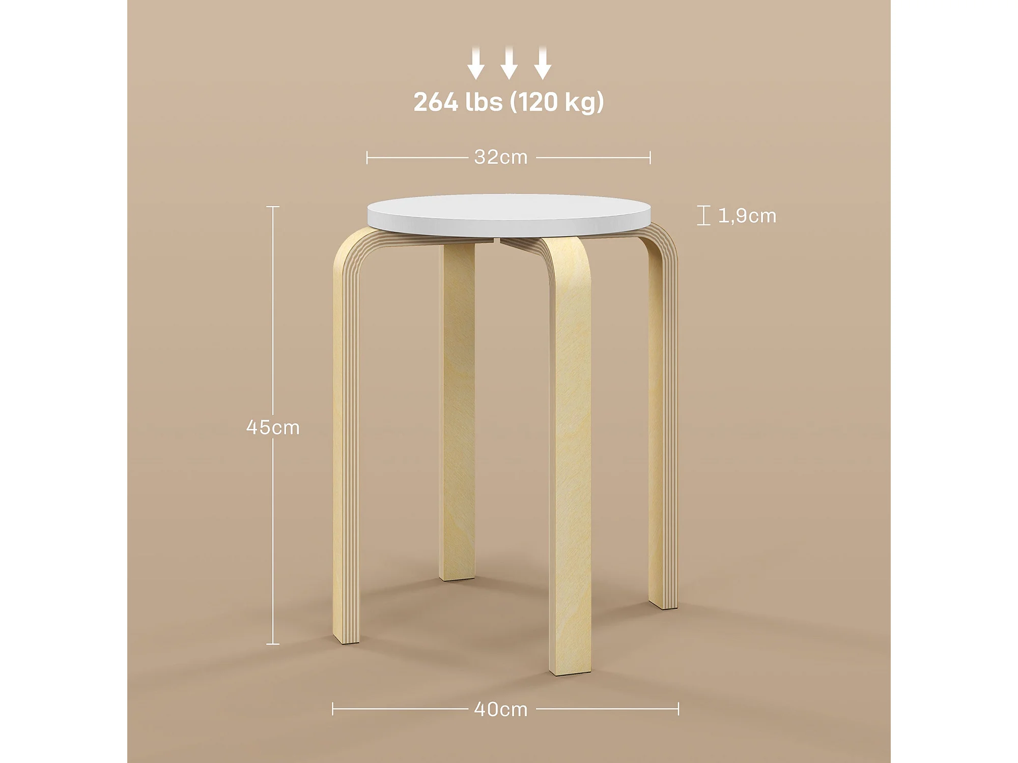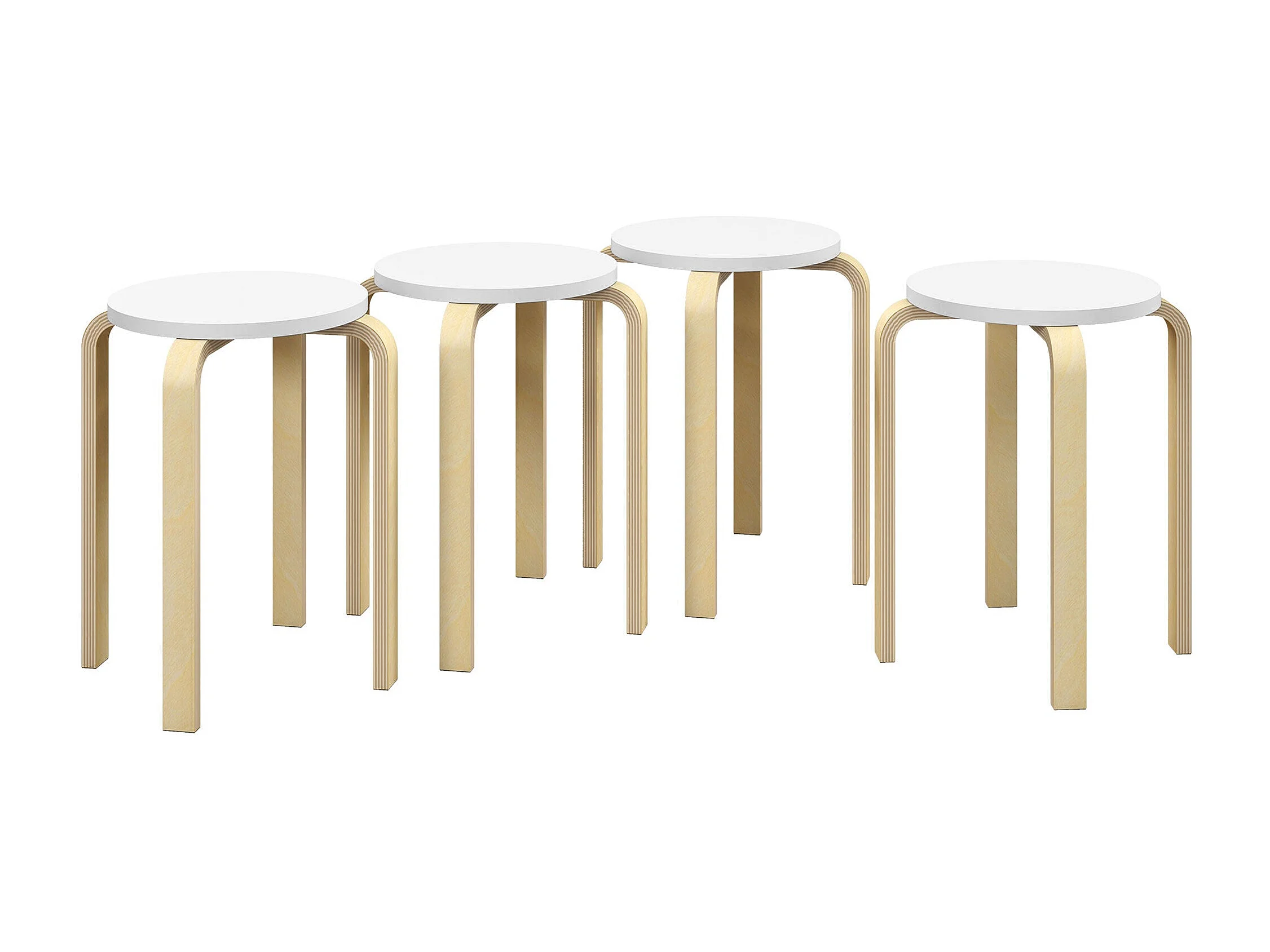 Conjunto de 4 Bancos de Madeira Redondos Modernos para Sala de Estar e Escritório - Modelo Dijon