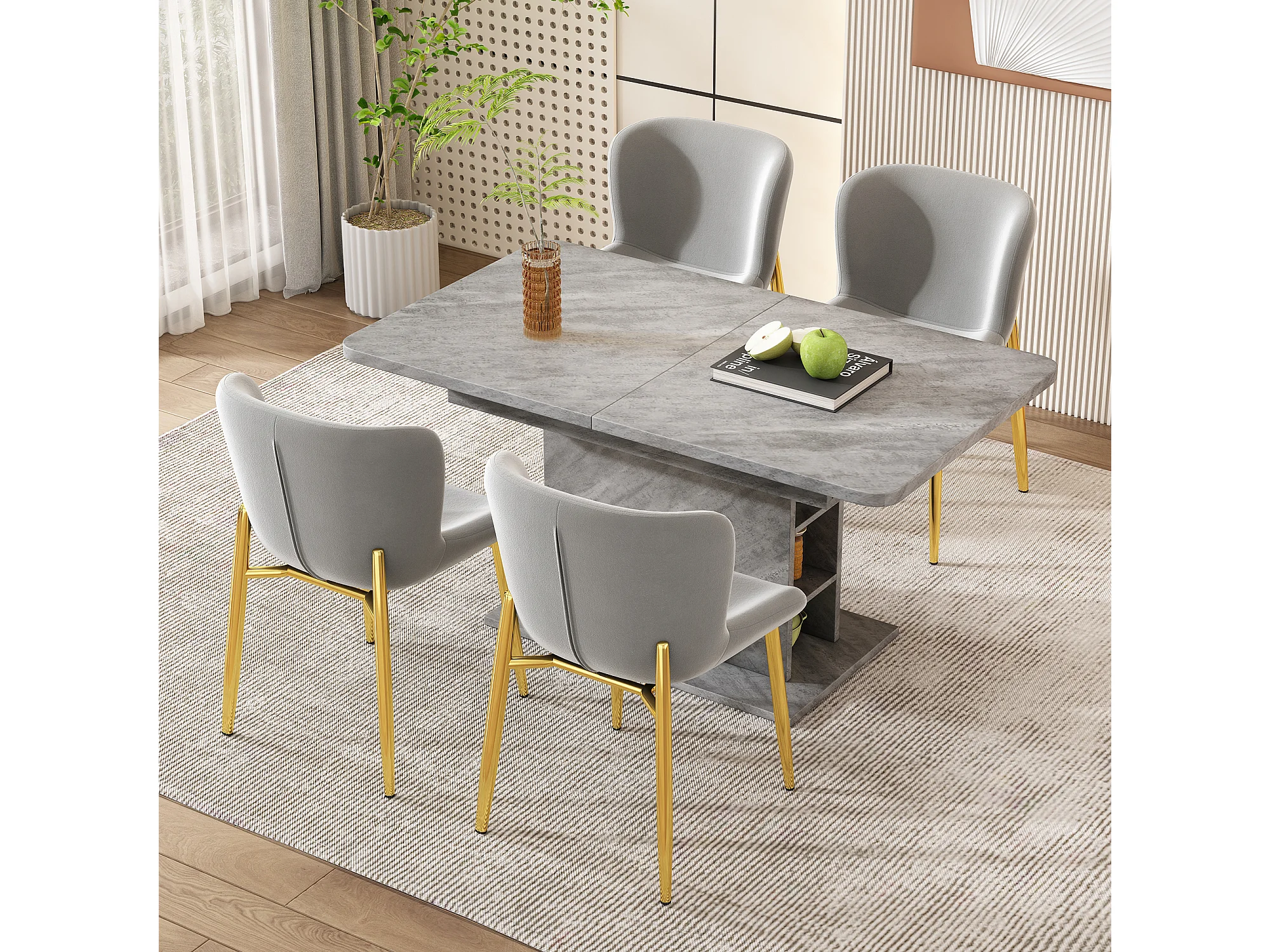 Conjunto de 4 cadeiras de jantar de veludo, cadeira de sala de estar, cinza