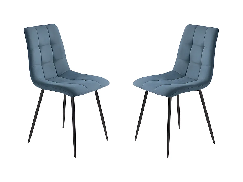 Pacote 2 cadeiras estofadas azuis com pés metálicos pretos