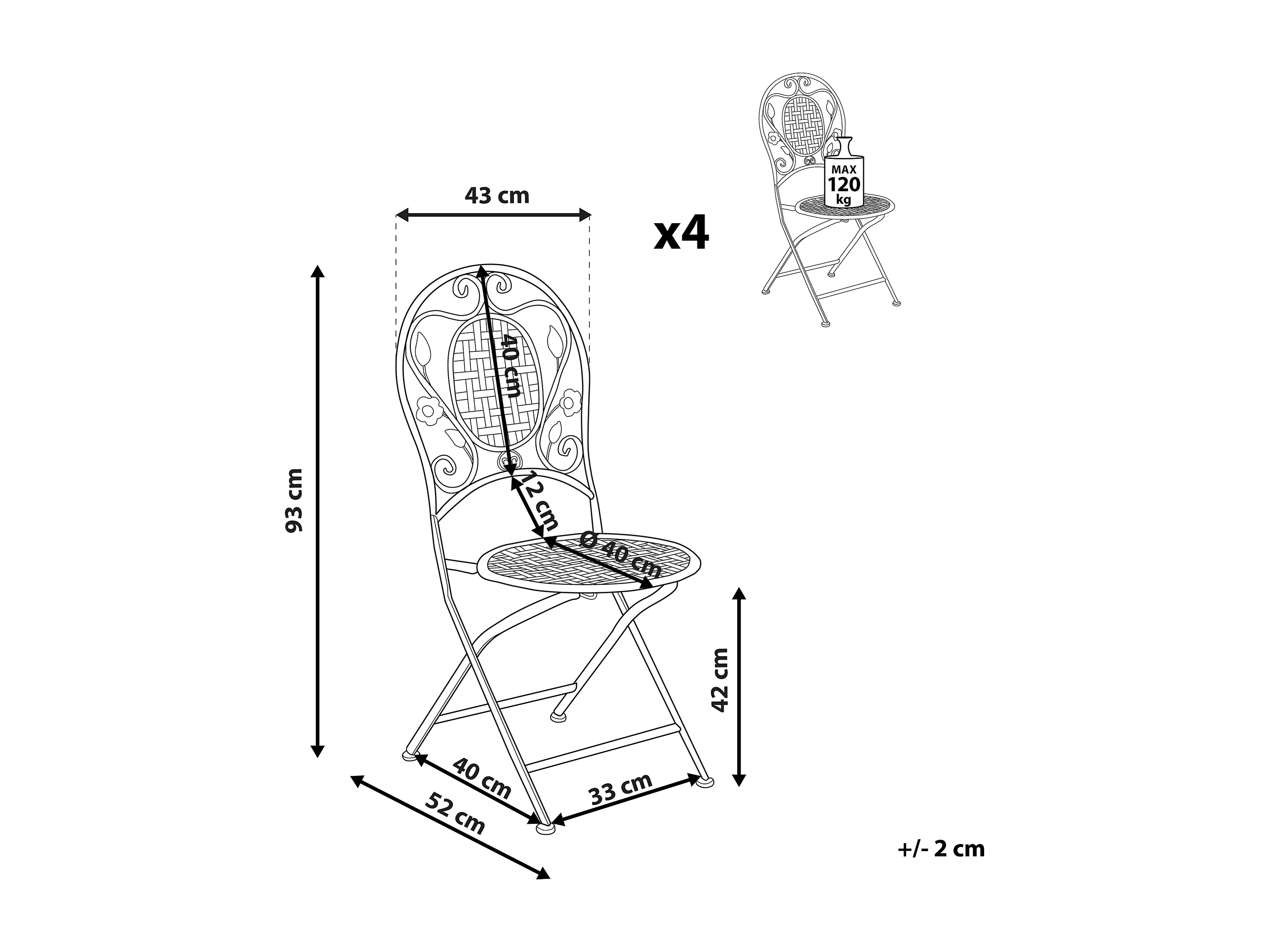 Conjunto de 4 cadeiras de jardim BIVIO Dobrável Metal Branco creme