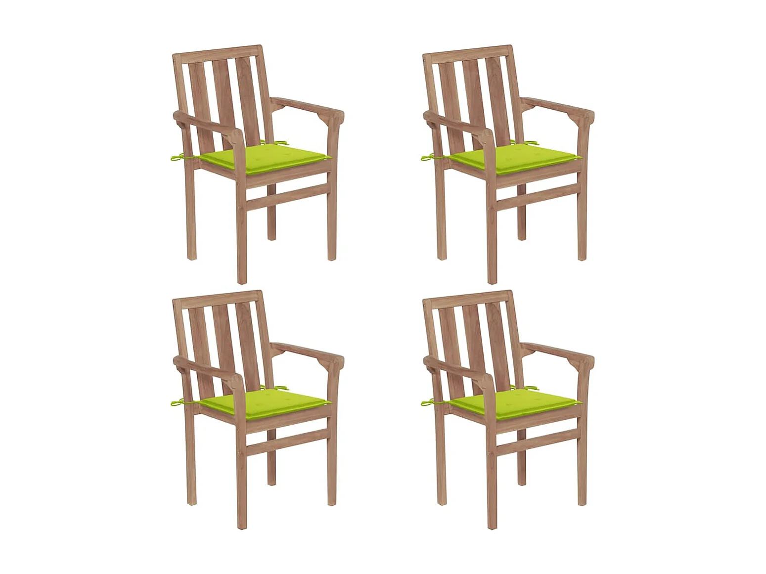 Conjunto de 4 cadeiras de jardim empilháveis com almofadas, teca maciça