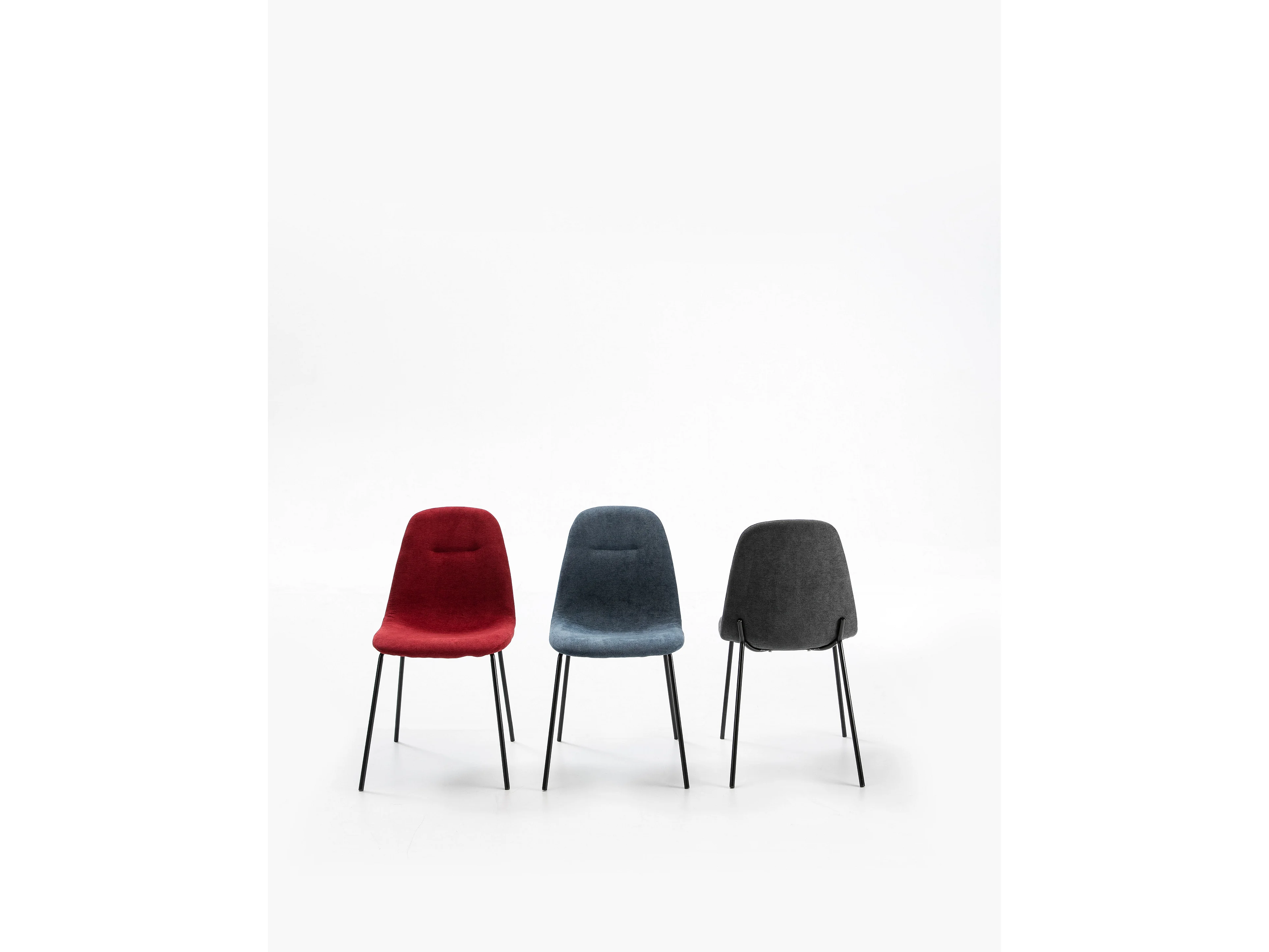 Conjunto de 4 cadeiras de tecido vermelho com pés de metal