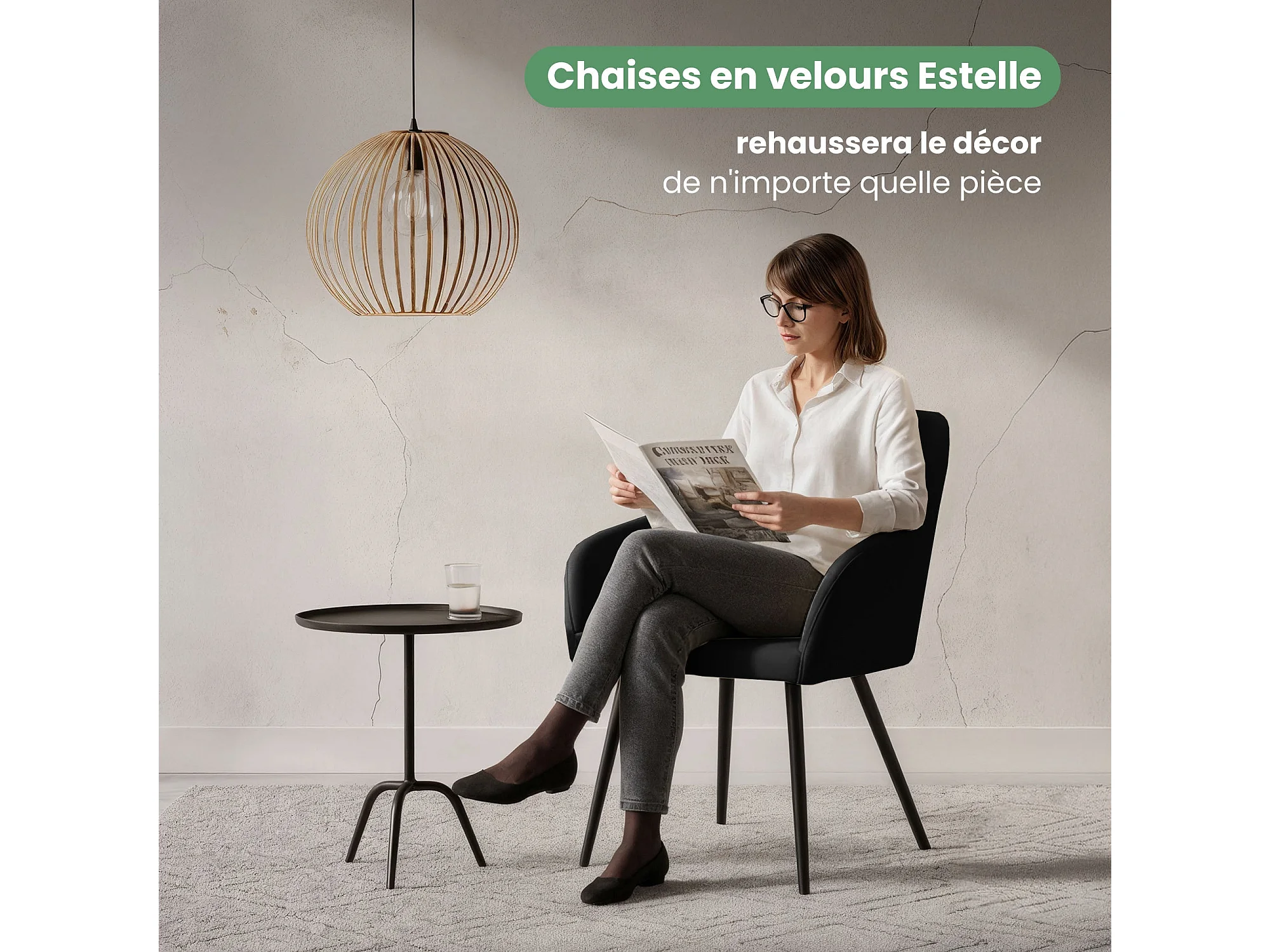 Conjunto de 4 cadeiras de veludo liso ESTELLE Preto com pés pretos