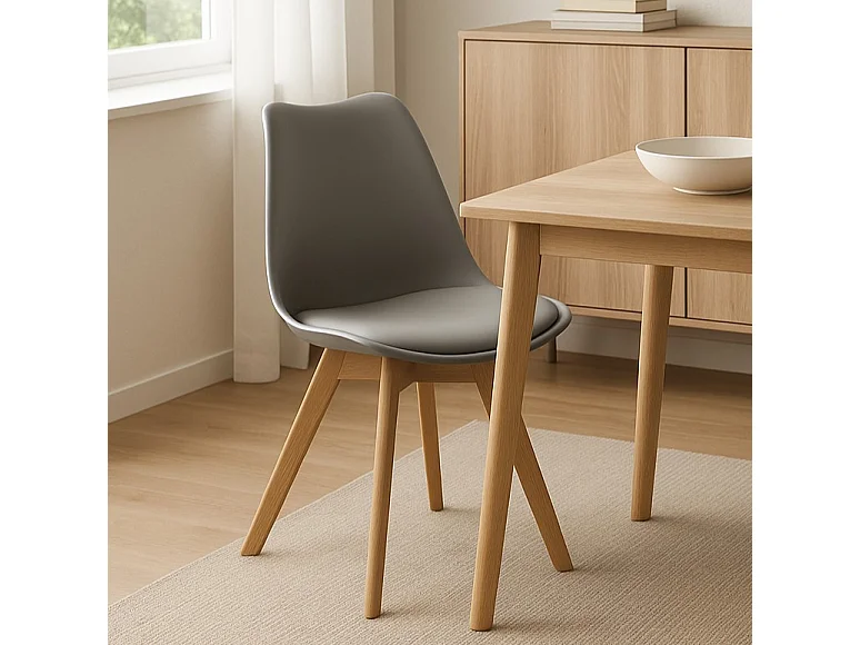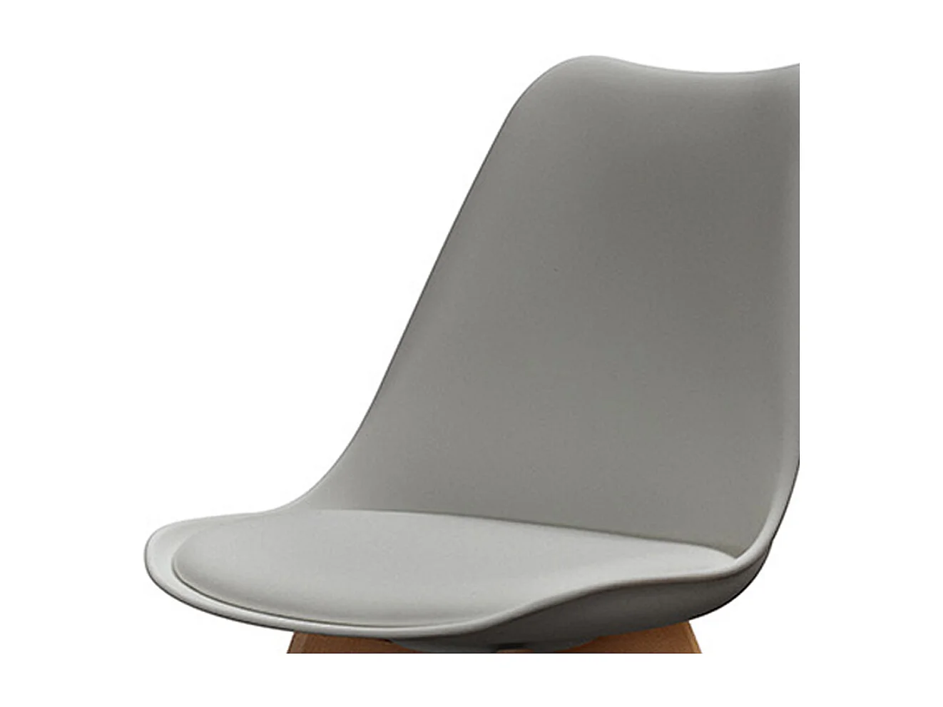 Conjunto de 4 cadeiras em polipropileno cinzento, almofada em pele sintética, pernas em madeira de faia, 47x52x82 cm - WYNWOOD