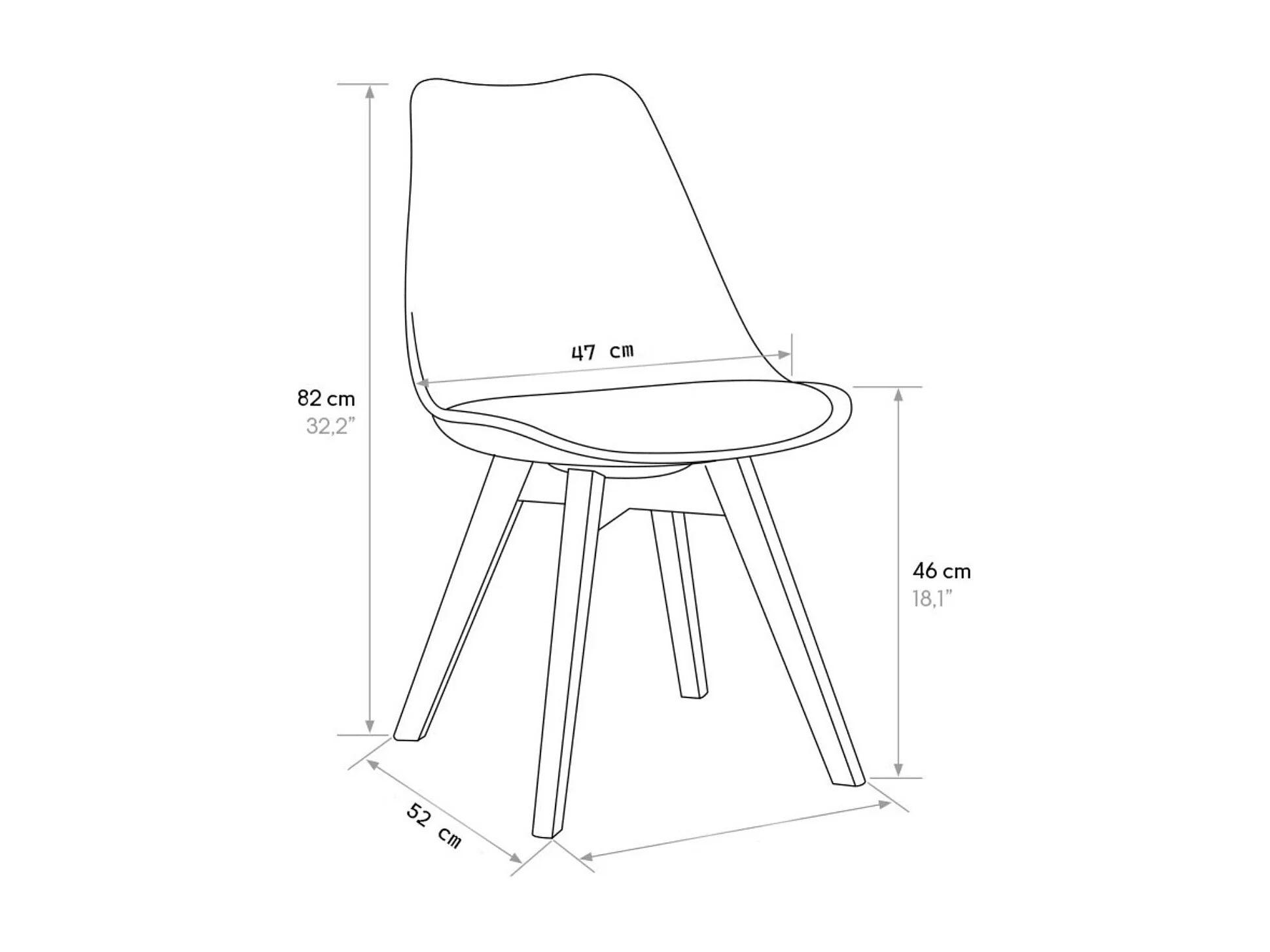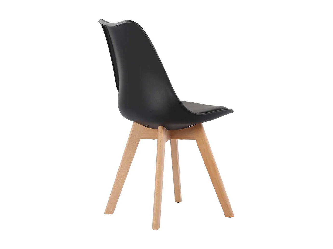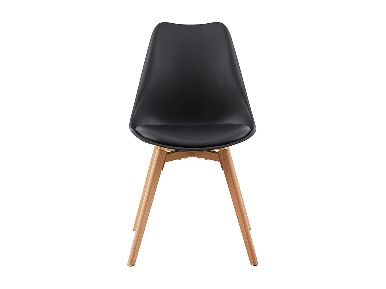 Conjunto de 4 cadeiras em polipropileno preto, almofada em couro sintético, pernas em madeira de faia, 47x52x82 cm - WYNWOOD