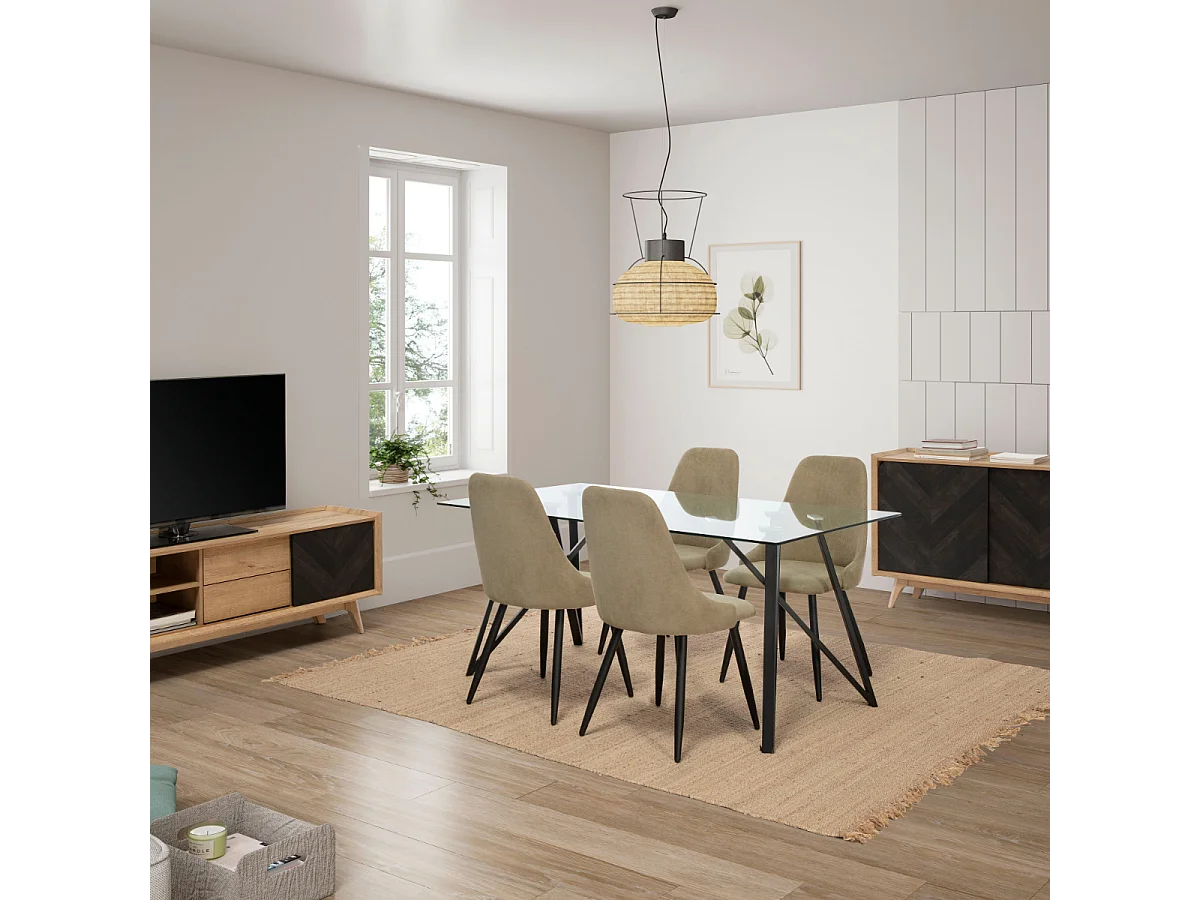 Conjunto de 4 cadeiras em tecido e pernas de metal preto 44x44 h91 cm