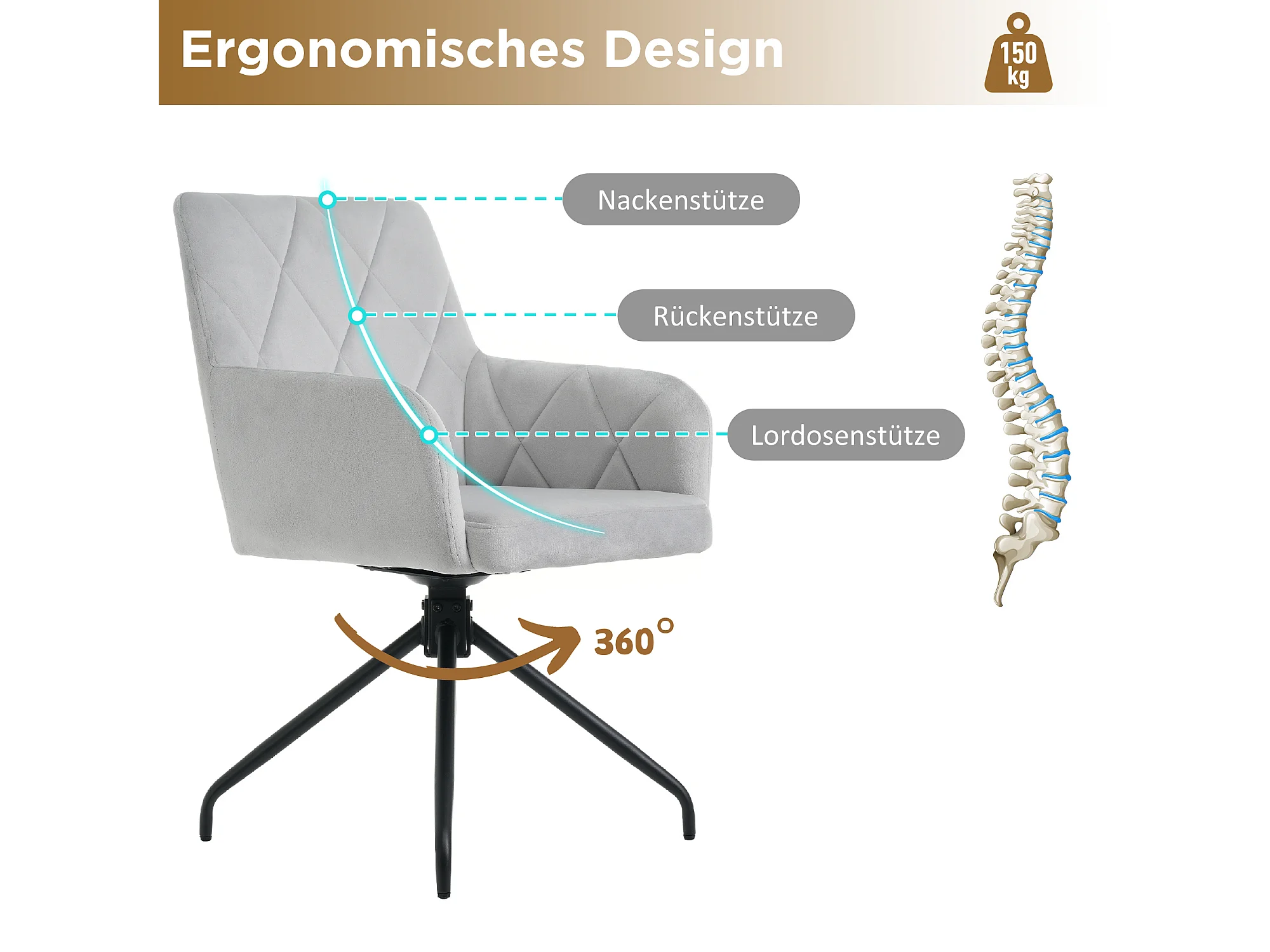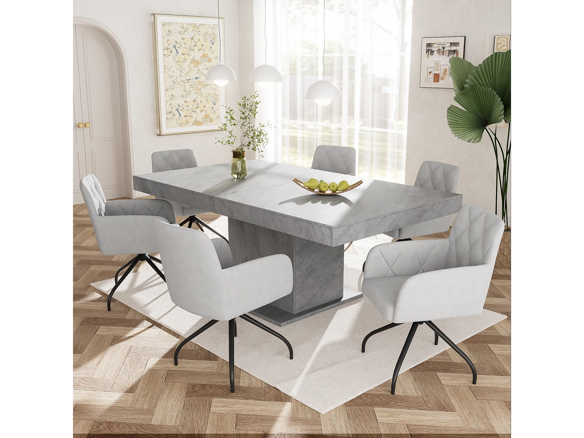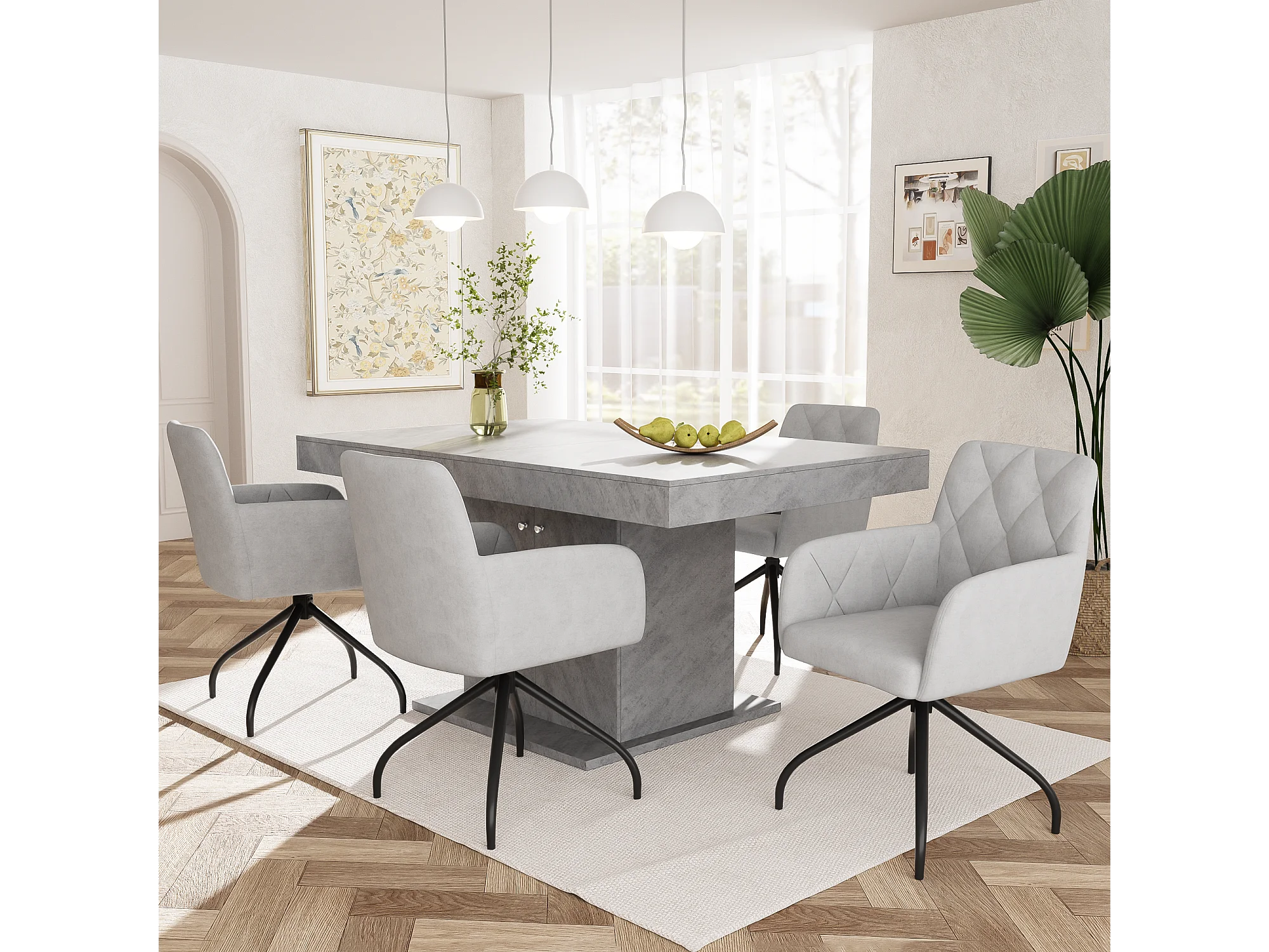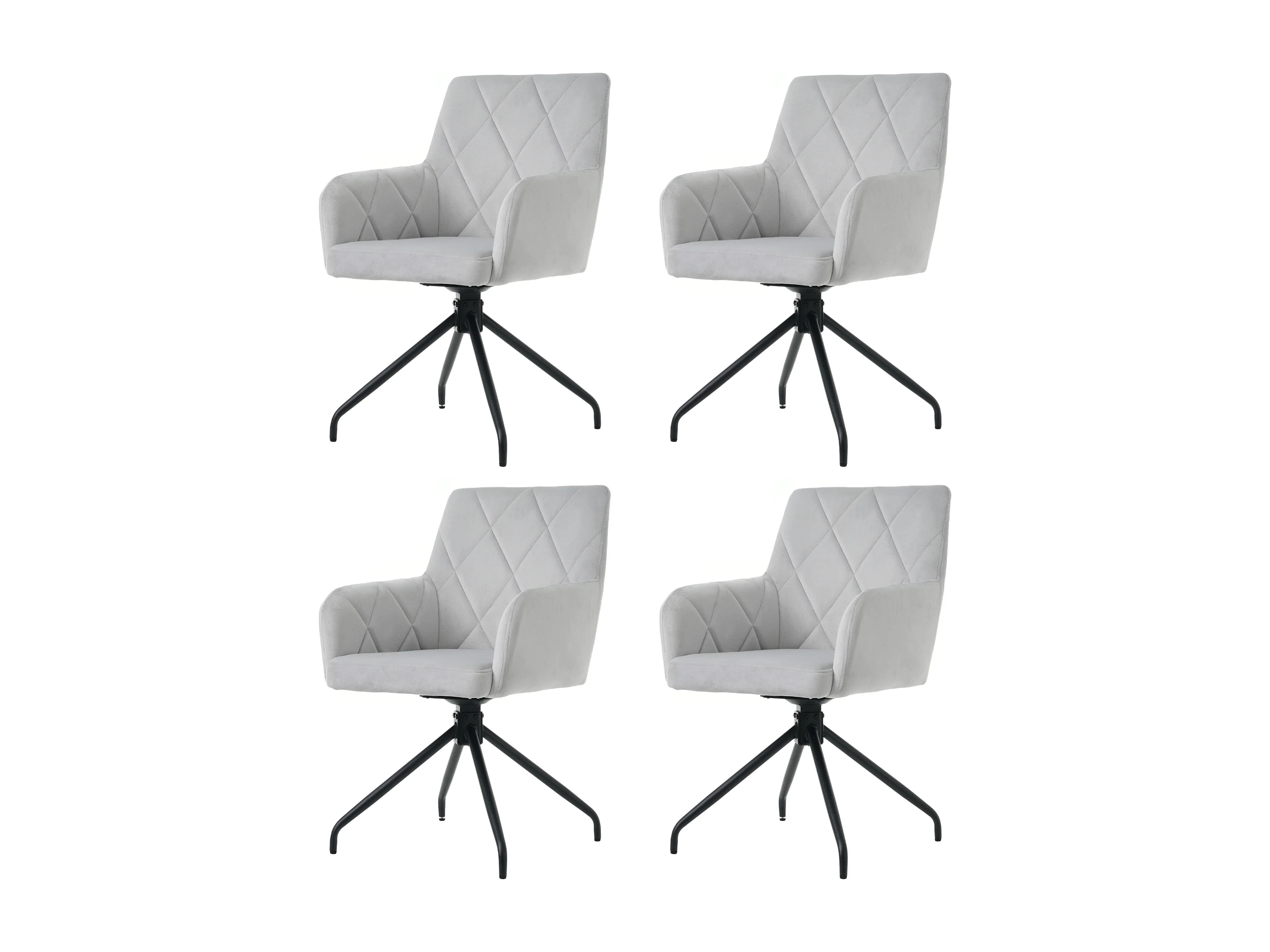 Conjunto de 4 cadeiras giratórias 360° em veludo - 85 x 60 x 46 cm - poltrona estofada com 4 pés de metal - cinza