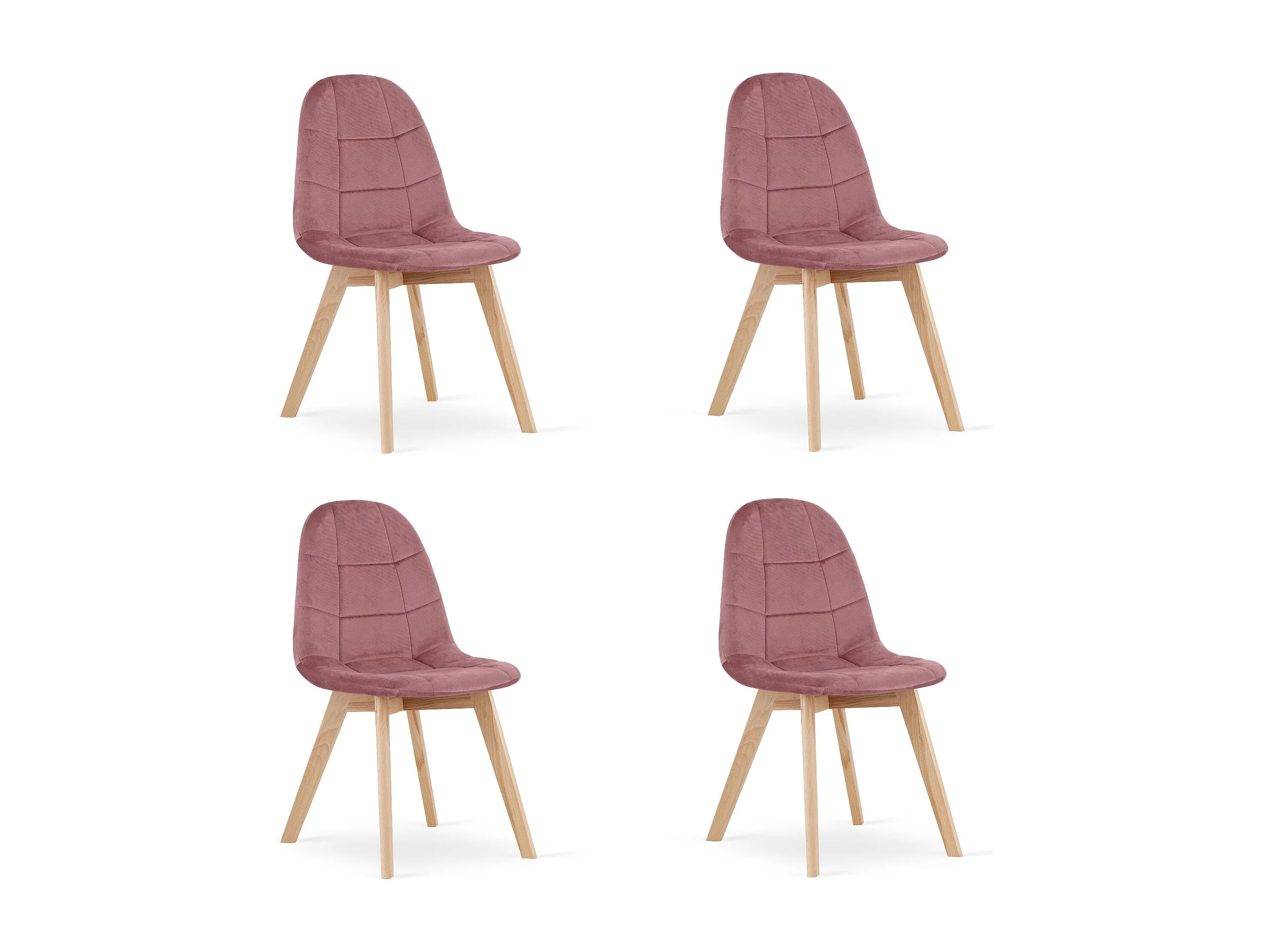 Conjunto de 4 cadeiras Valora NUUC em veludo rosa escuro com design ergonômico.