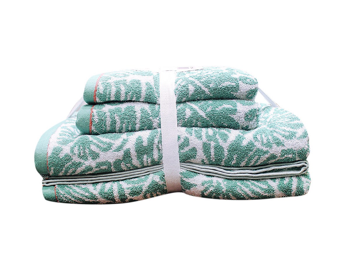 Conjunto de 4 toalhas de banho FESTIVAL - Algodão - 2 pequenas e 2 médias - Verde e branco