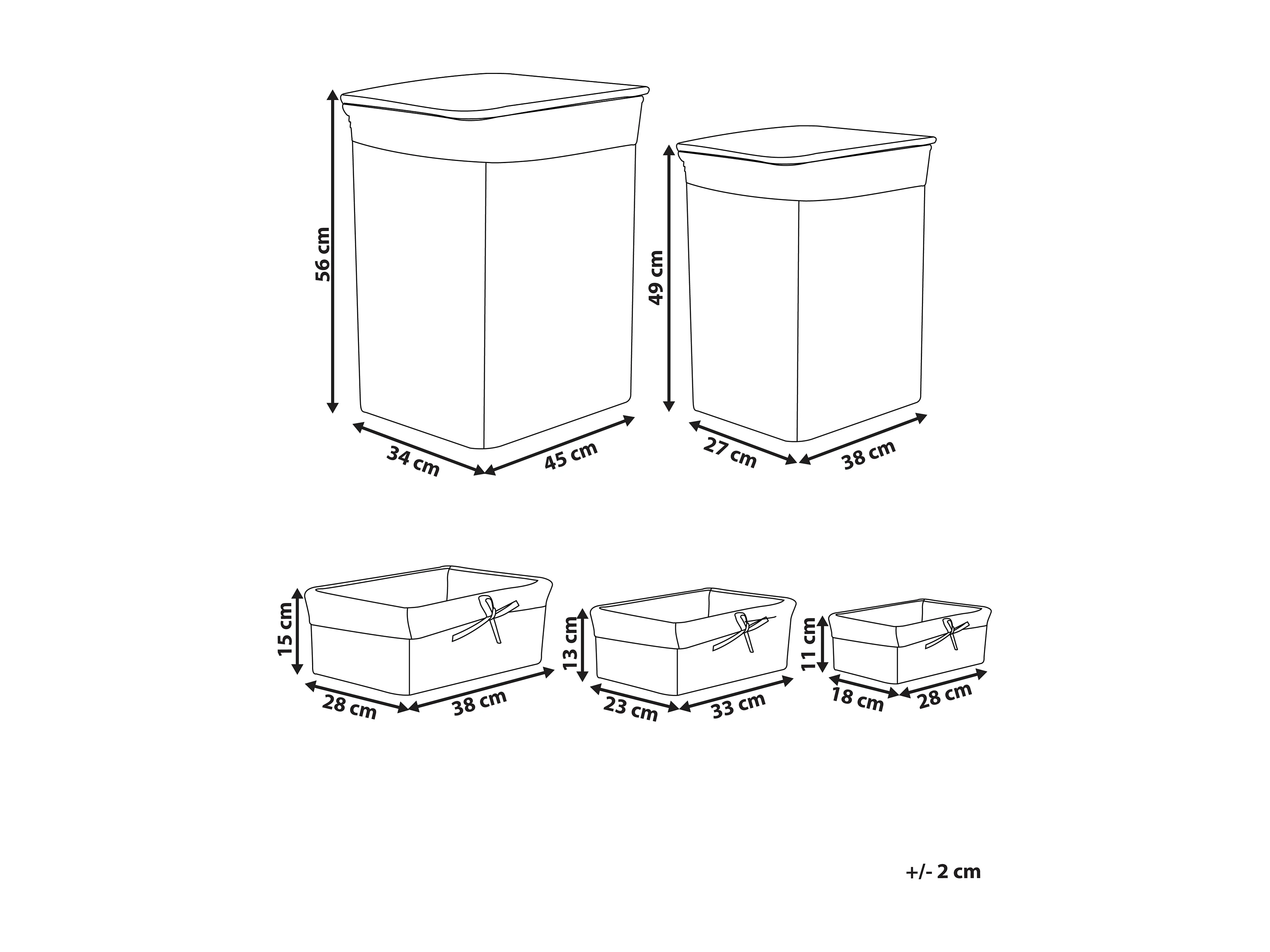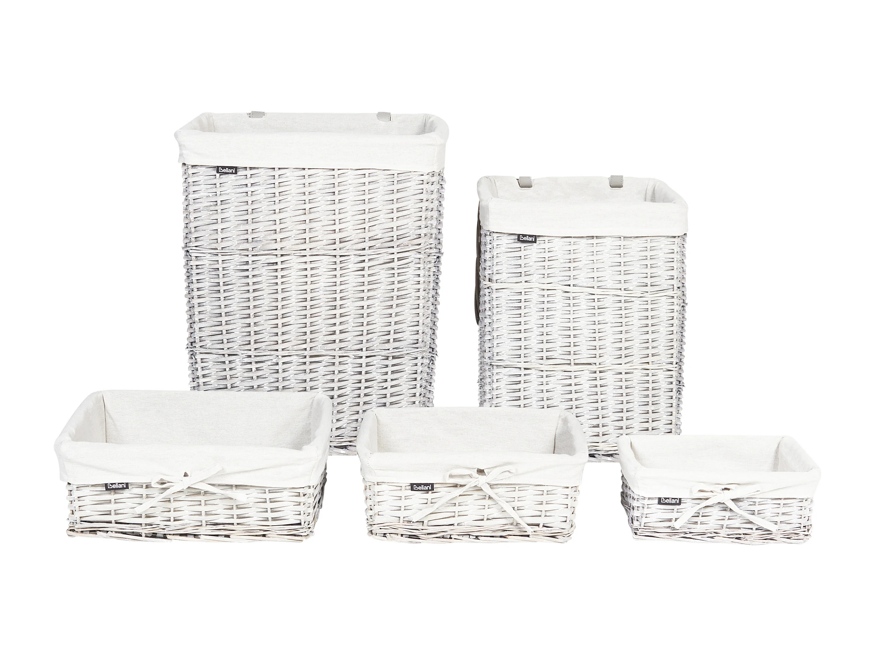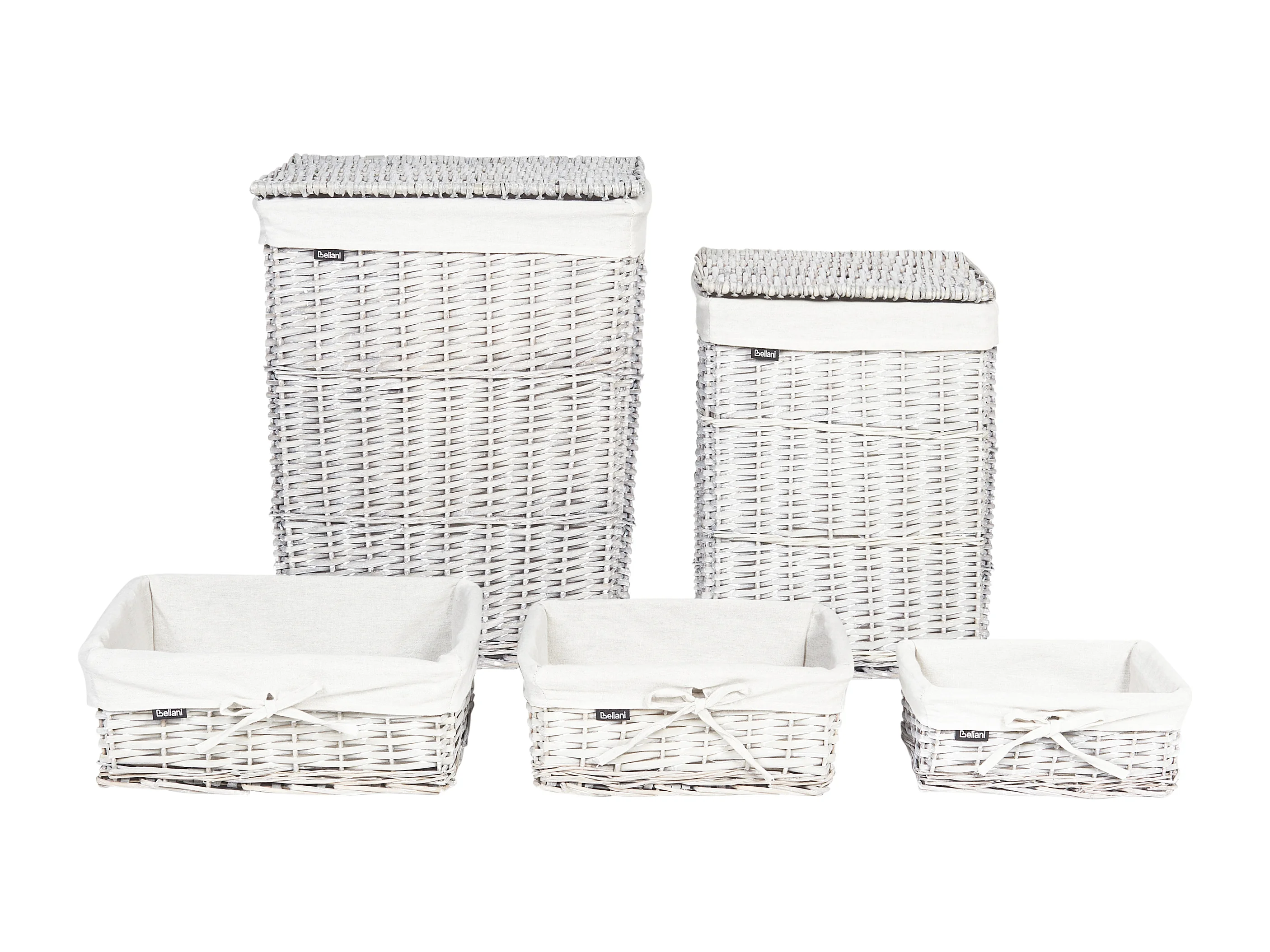 Conjunto de 5 cestos de roupa em madeira branca ELLA