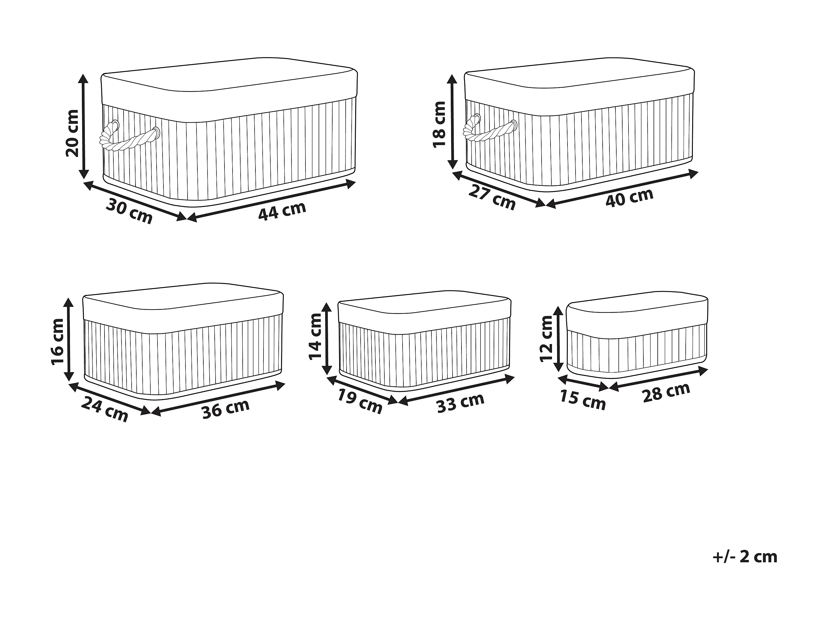Conjunto de 5 cestos TALPE Madeira de bambu Cinzento