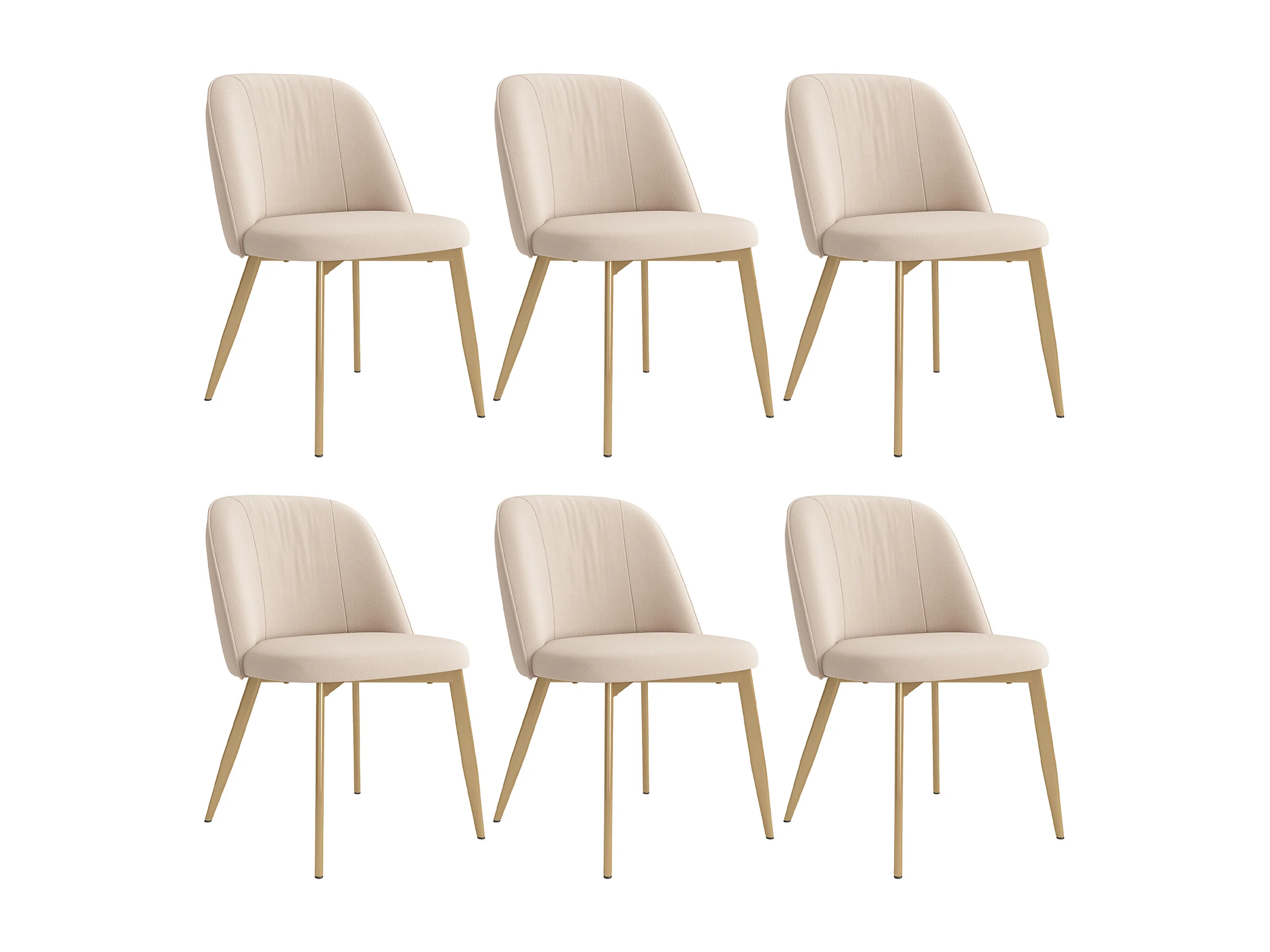 Conjunto de 6 cadeiras de jantar - 53 x 50 x 80 cm - estilo moderno - pés dourados - veludo - bege