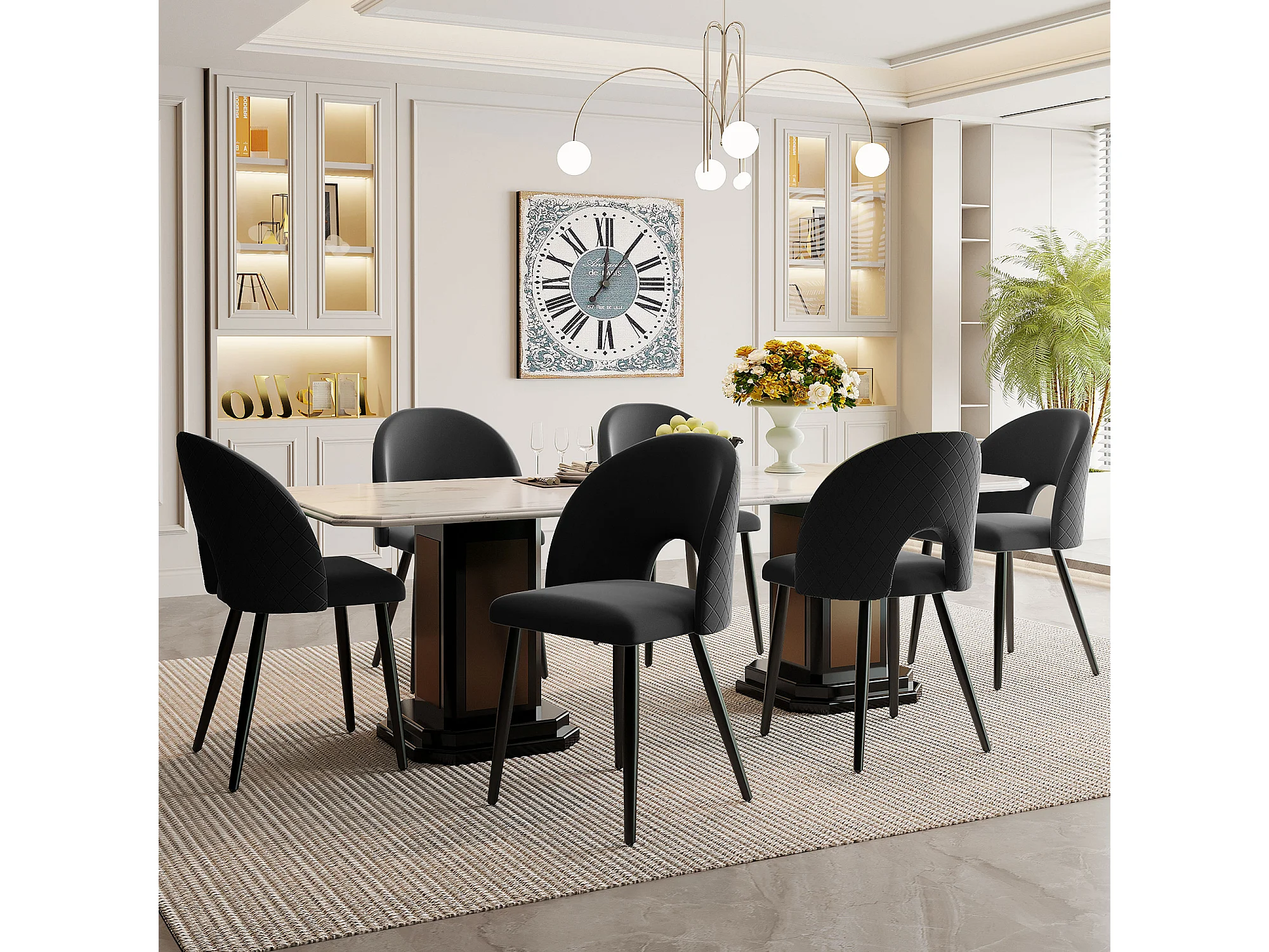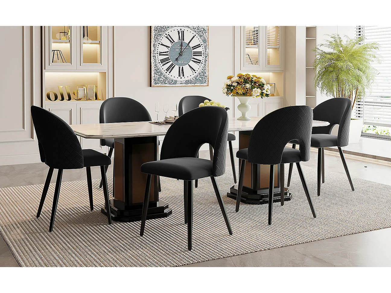 Conjunto de 6 cadeiras de jantar estofadas em veludo, pretas