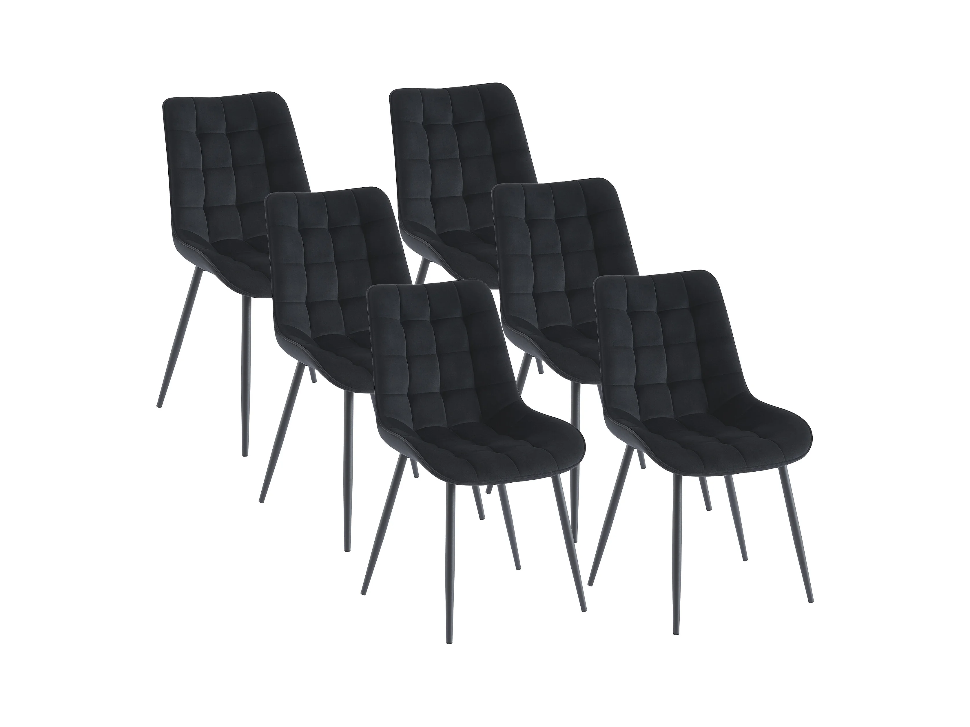 Conjunto de 6 cadeiras estofadas veludo e metal preto, cor preto - OLLUA