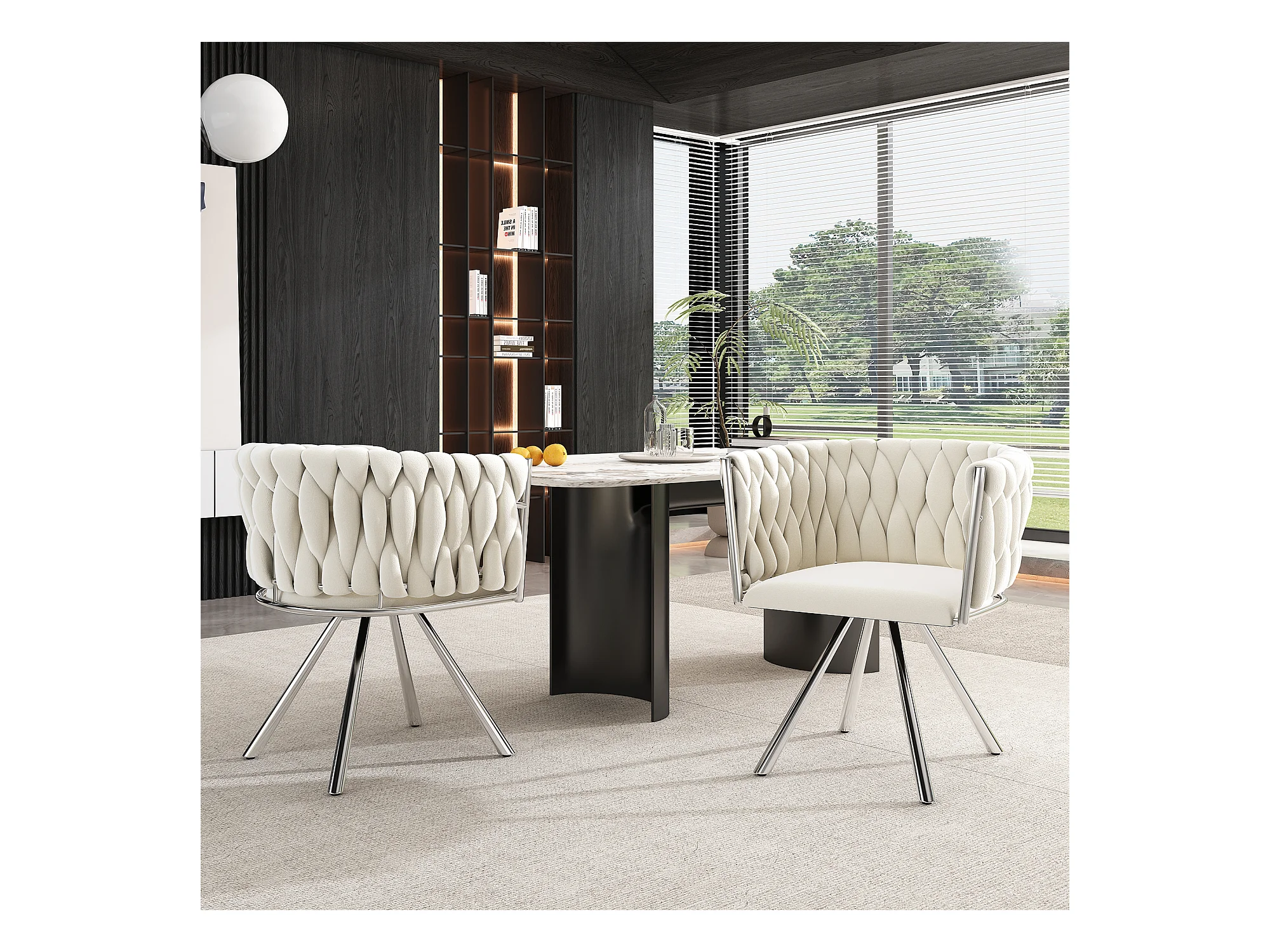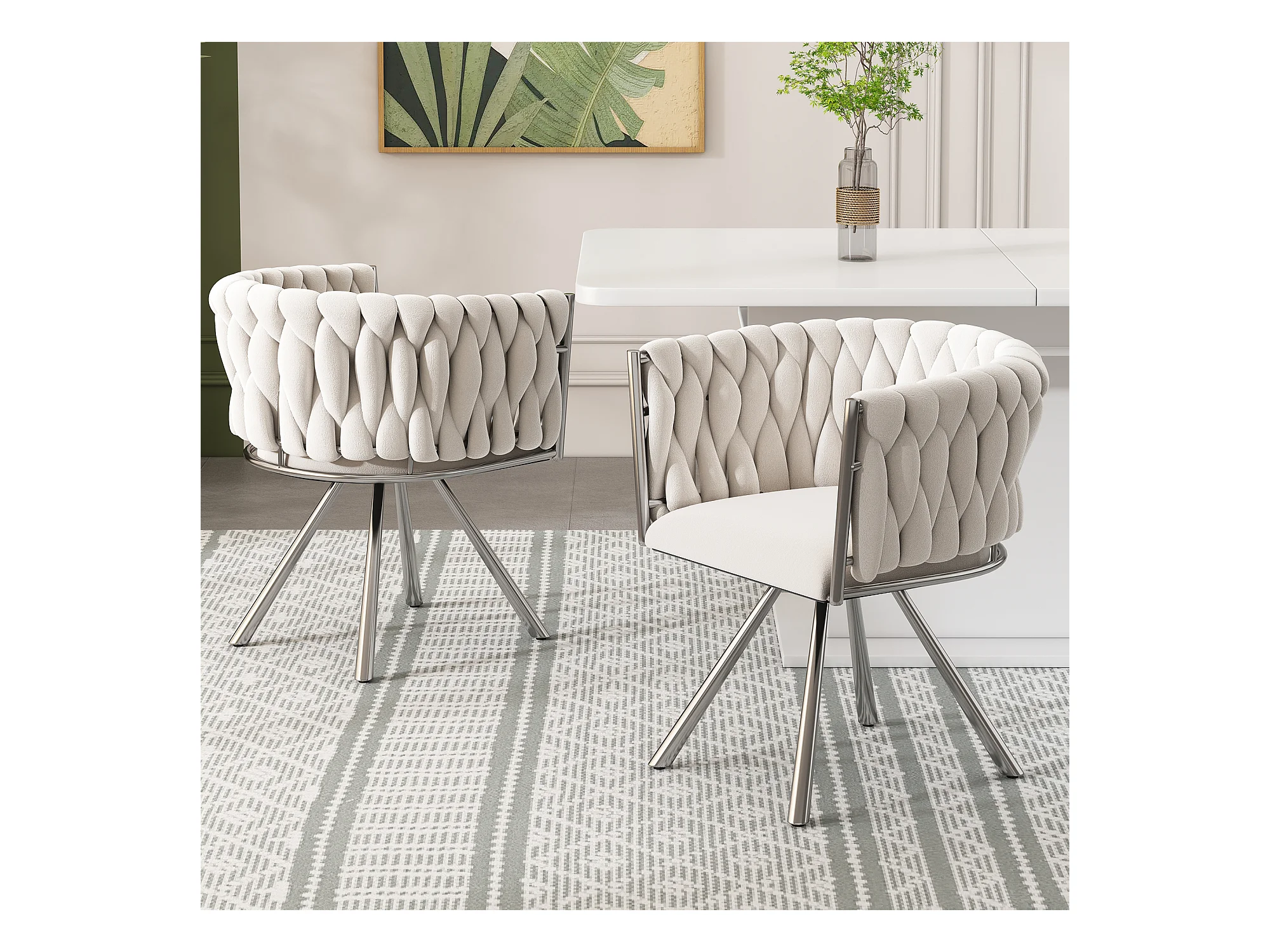 Conjunto de 6 cadeiras giratórias de veludo - 72 x 44 x 59 cm - Sala de estar e quarto - Quatro pernas de metal prateado - Bege