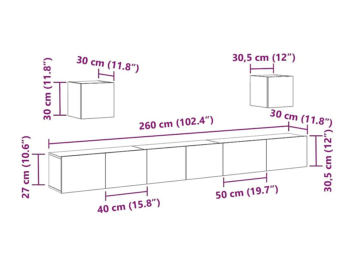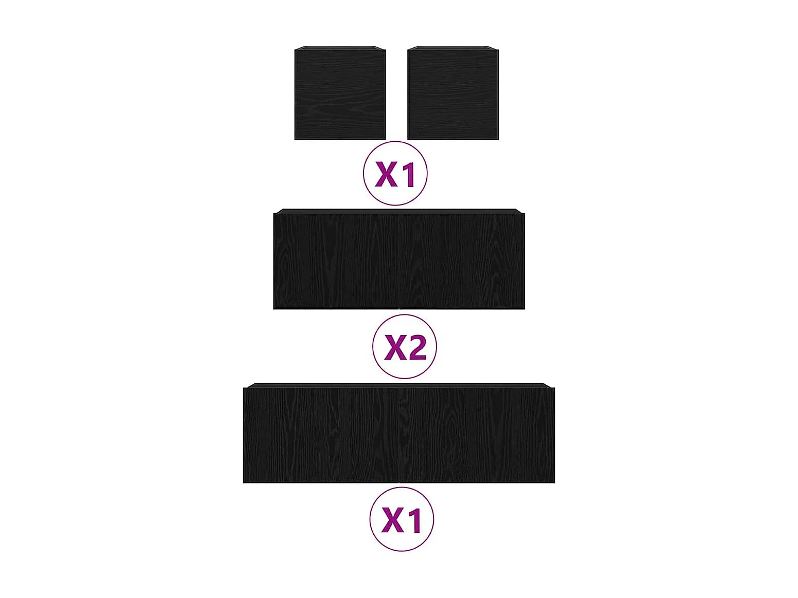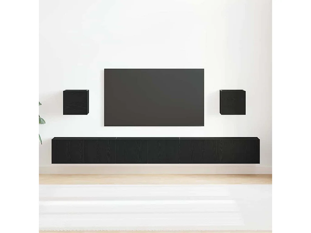Conjunto de 7 Peças de Armários para TV Carvalho Preto Madeira Engenheirada